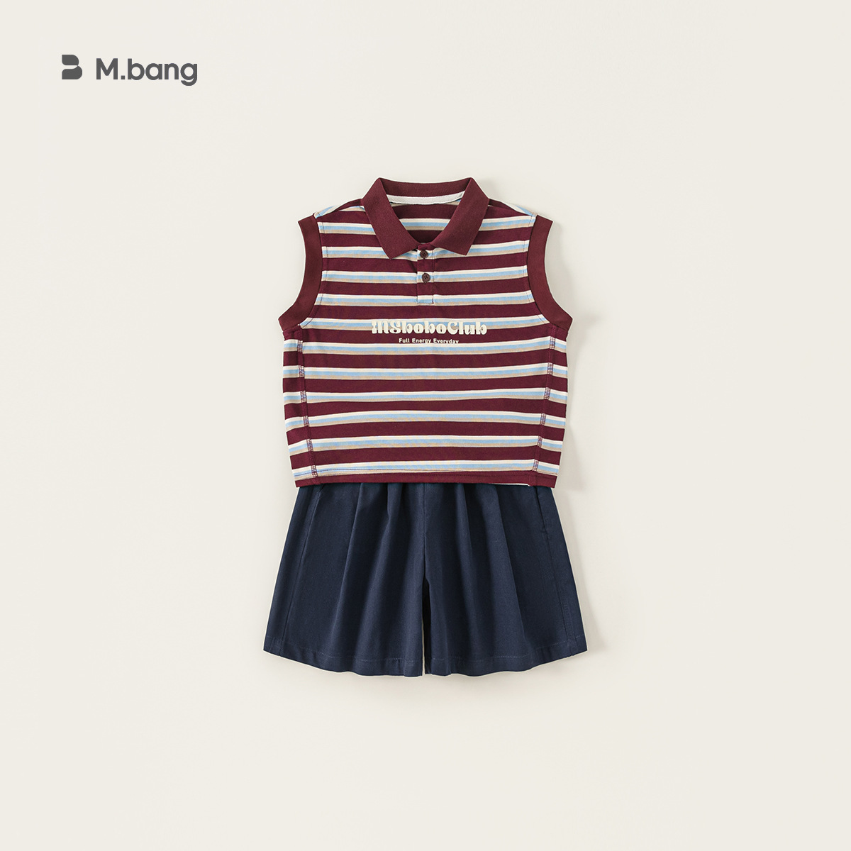童裝大童套裝夏季新品條紋無袖polo衫純色短褲女童兩件套