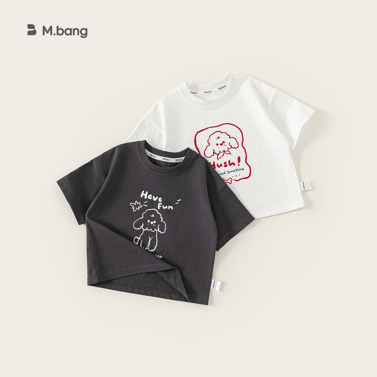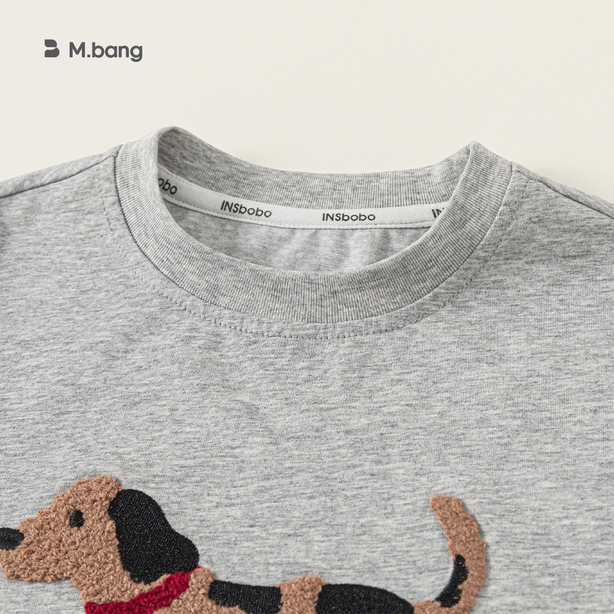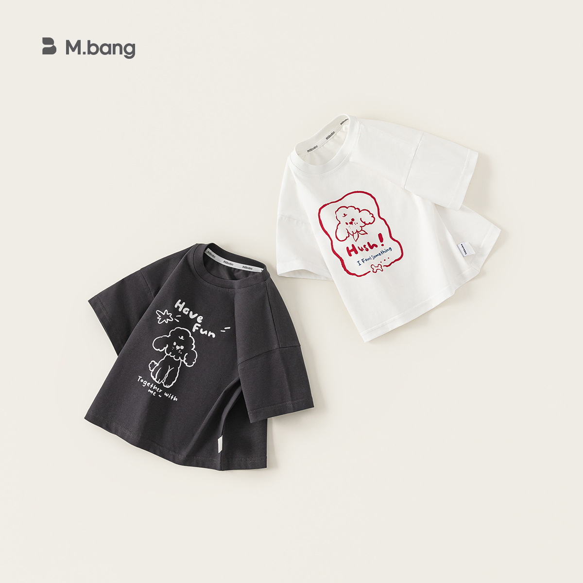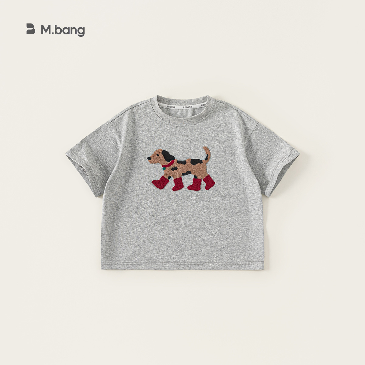 童裝男童短袖夏季新品小狗灰色圓領兒童T恤百搭簡約女童上衣