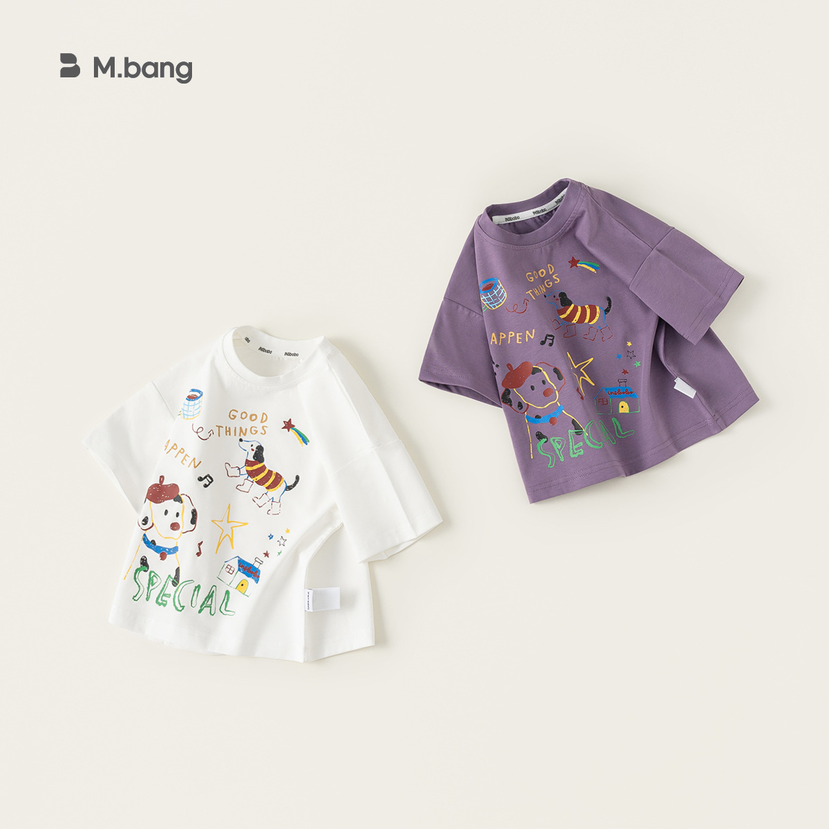 童裝男童T恤夏季新款小狗塗鴉兒童上衣寬鬆百搭小童短袖