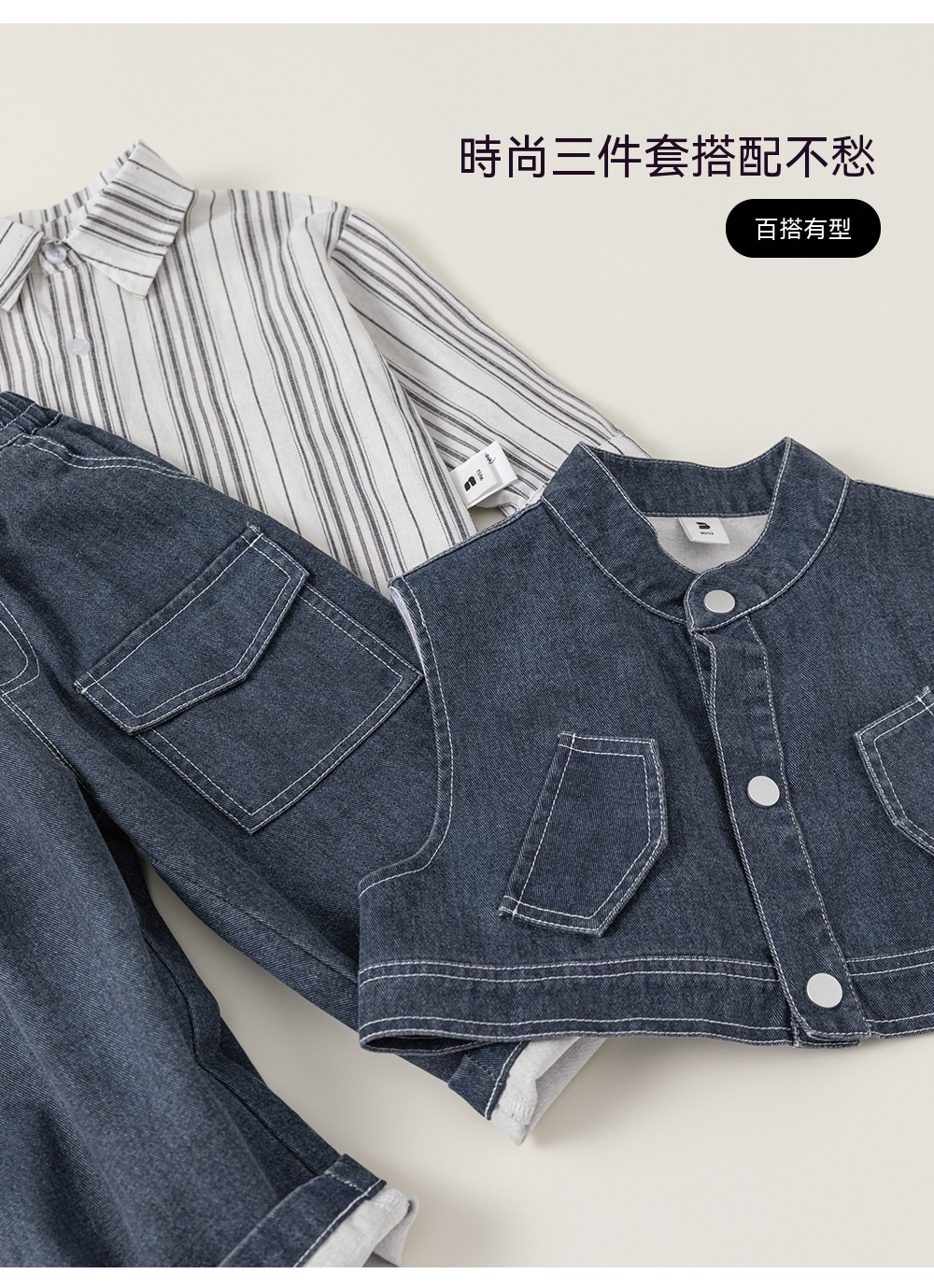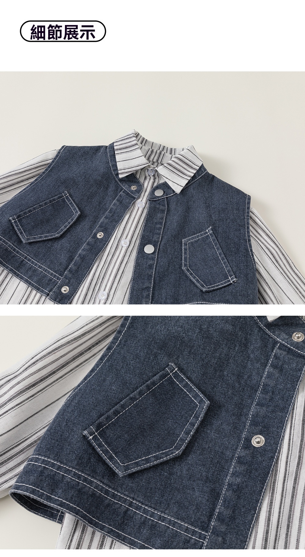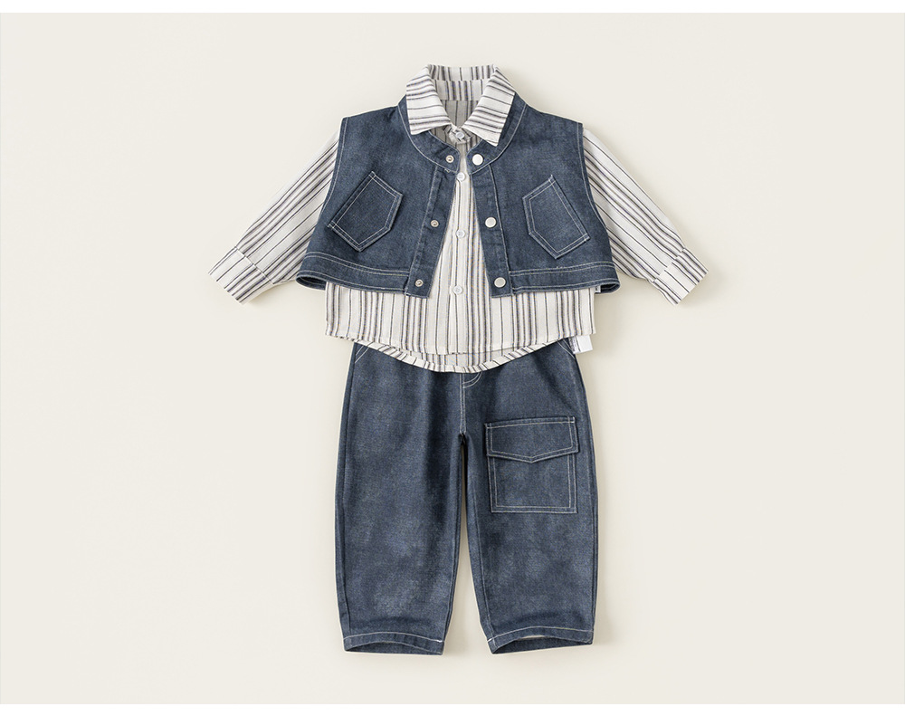 兒童套裝韓版童裝炸街痞帥秋款條紋長袖襯衫馬甲男童三件套