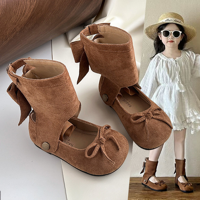 女童芭蕾風復古絨面一鞋兩穿皮靴秋季時尚兒童洋氣軟底公主鞋