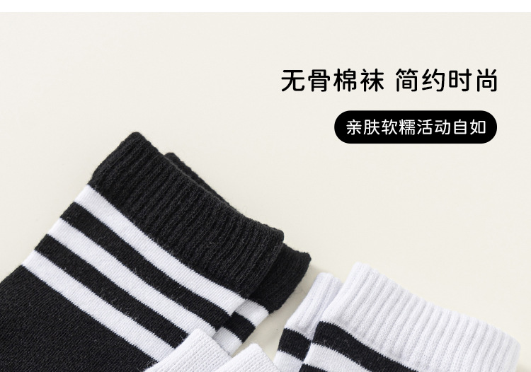 春夏款透氣兒童襪子簡約小白襪女童小腿襪學院風三條槓中筒襪