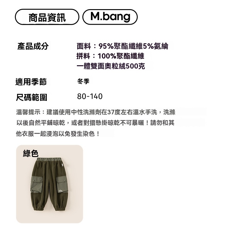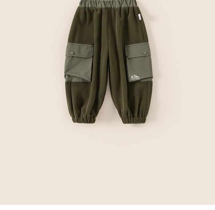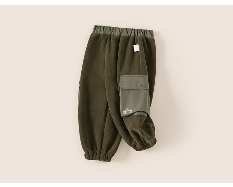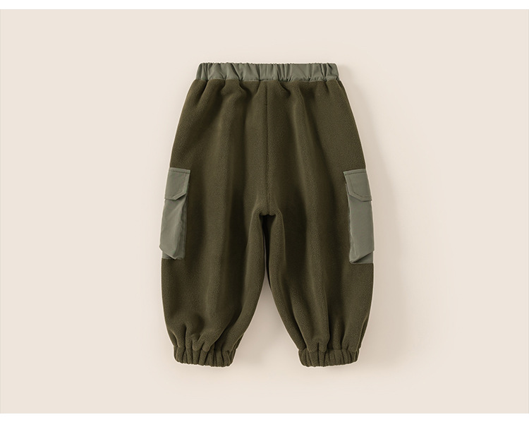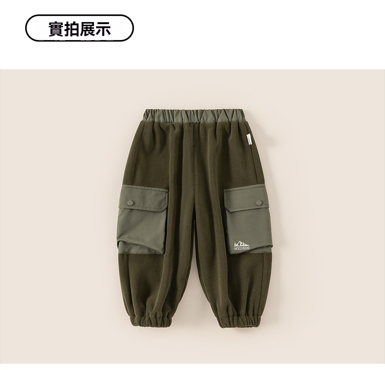 男孩褲子冬季新款雙面絨寶寶束腳褲大口袋帥氣兒童工裝褲子