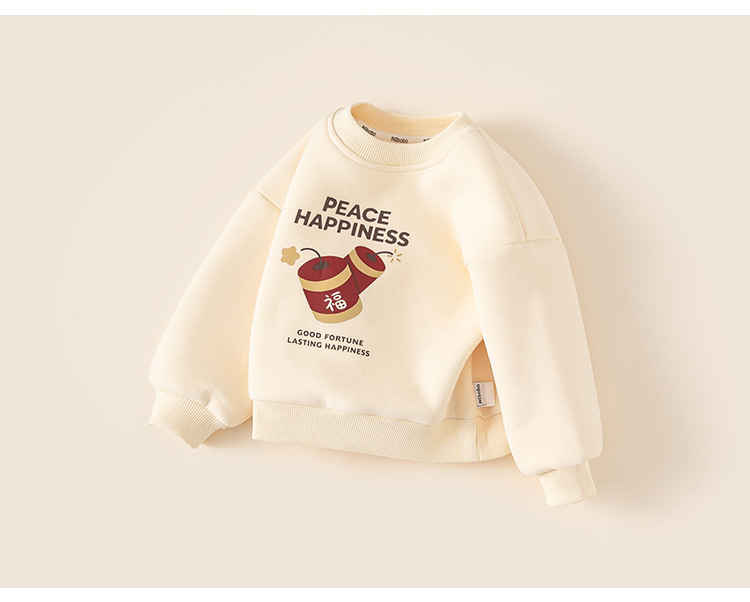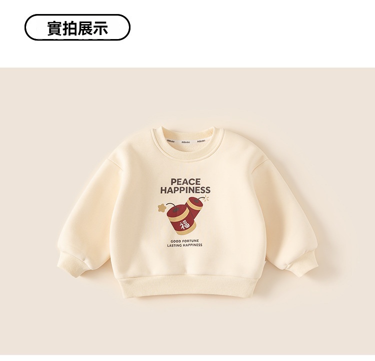 男童衣服冬季印花圓領寶寶上衣一體絨套頭兒童衛衣