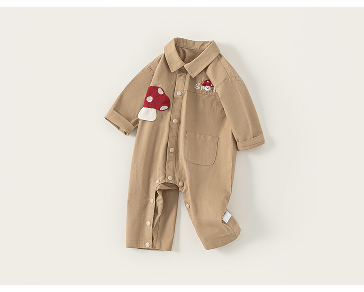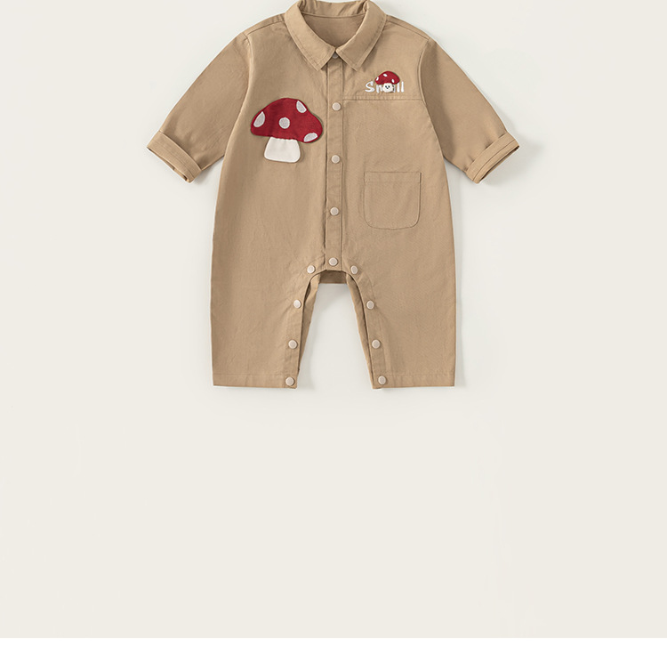 秋季新款新生兒衣服翻領長袖卡通蘑菇男寶寶連體衣男童爬服