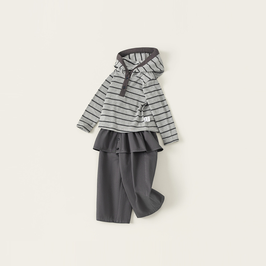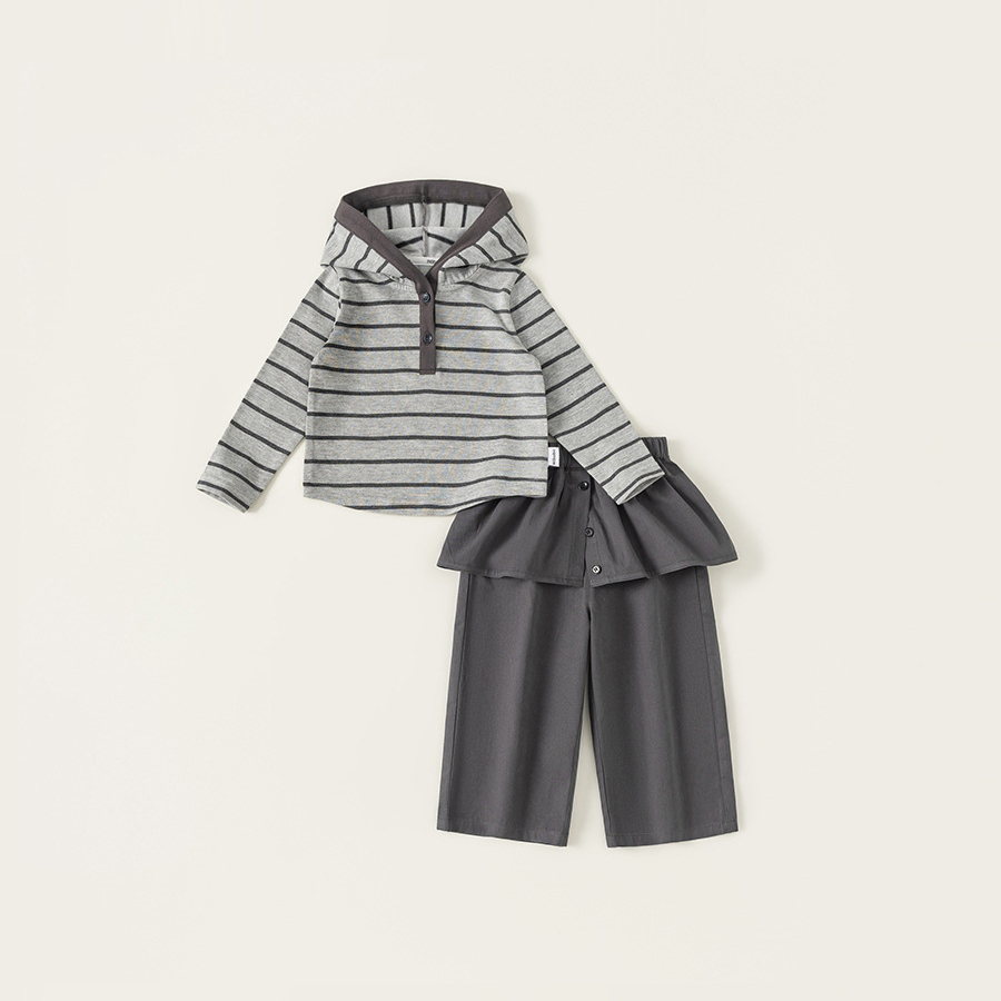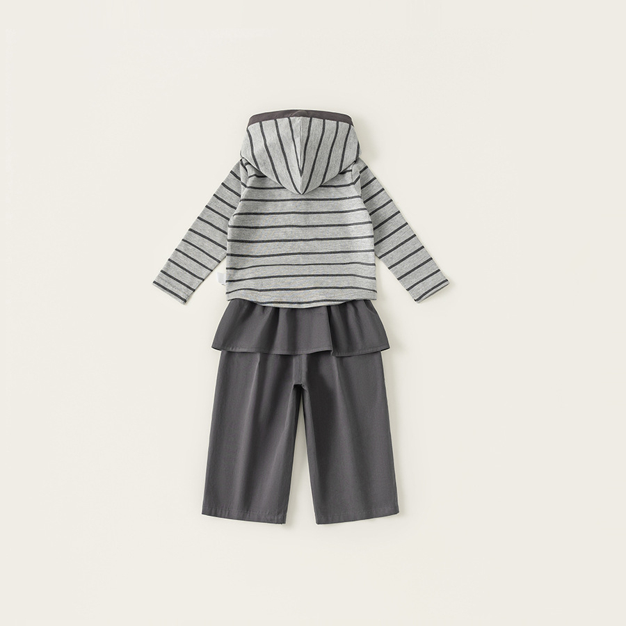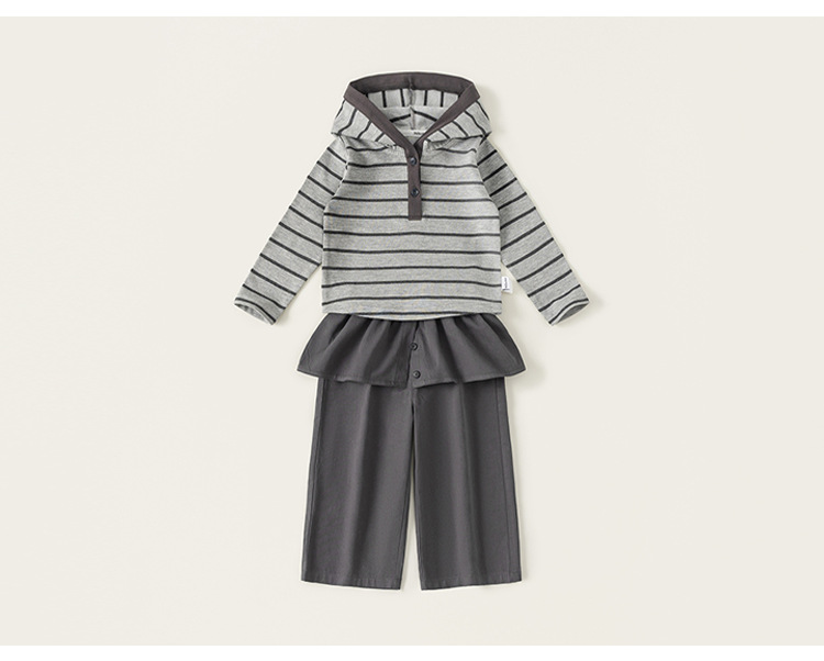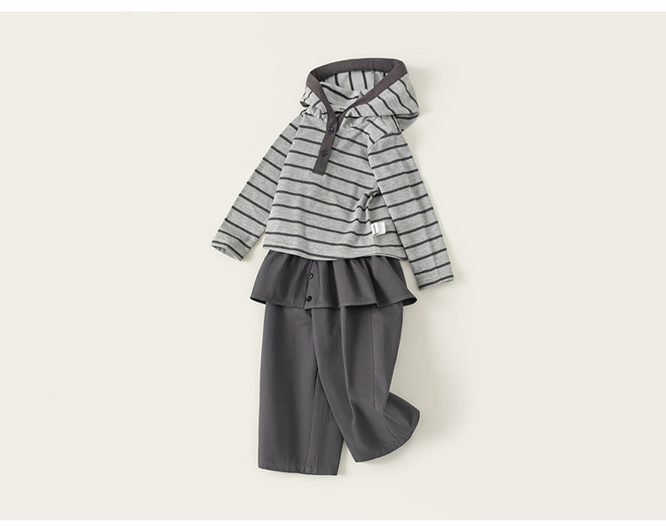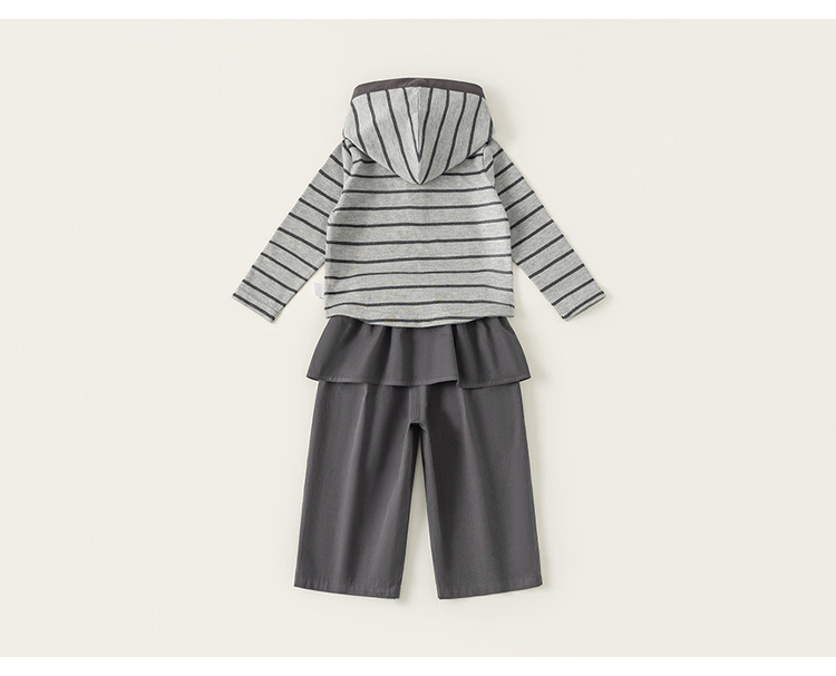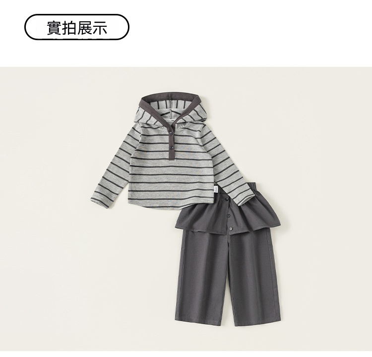 童装女童套装条纹连帽衫屁帘直筒裤儿童两件套春季时尚休闲装