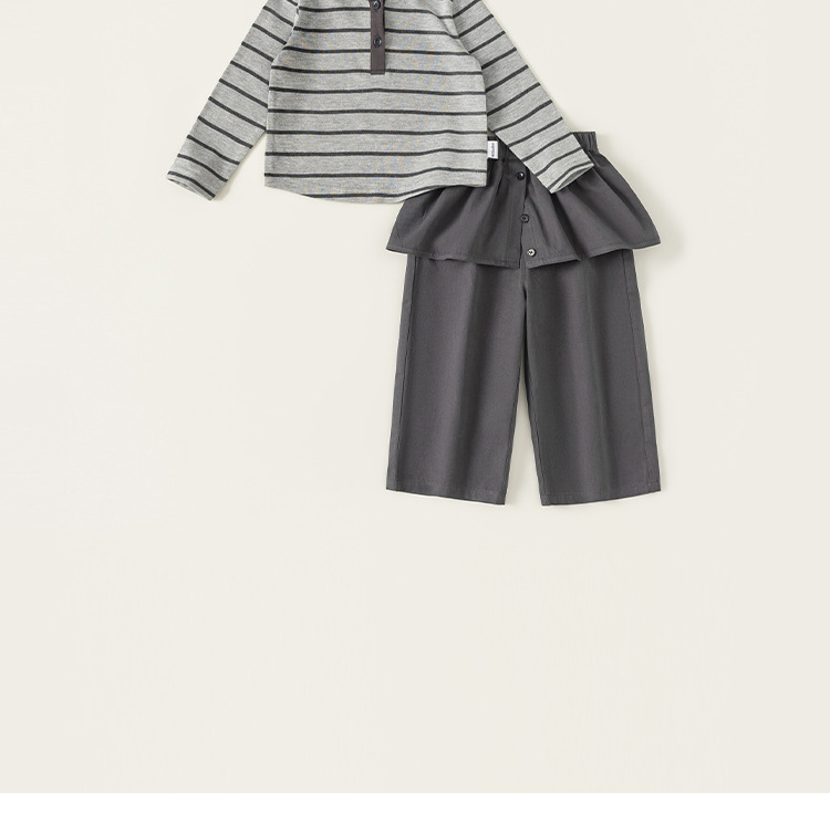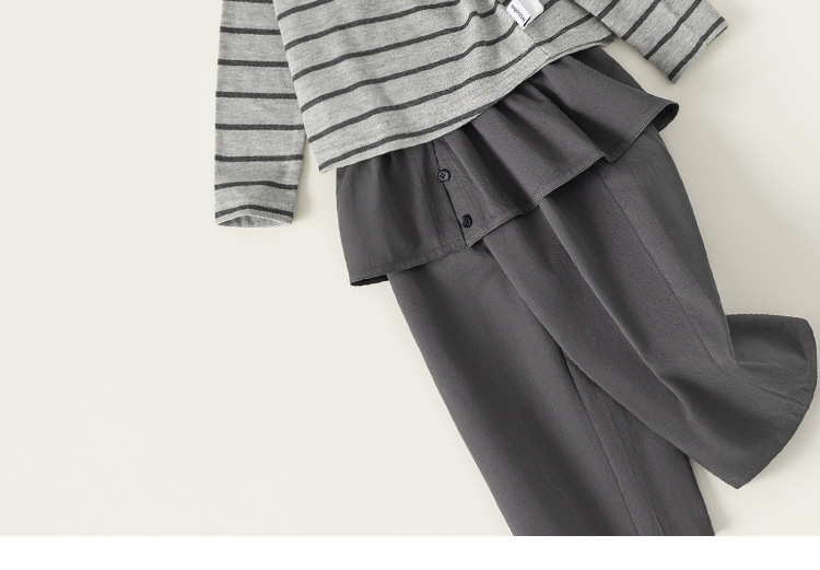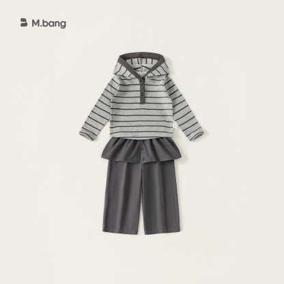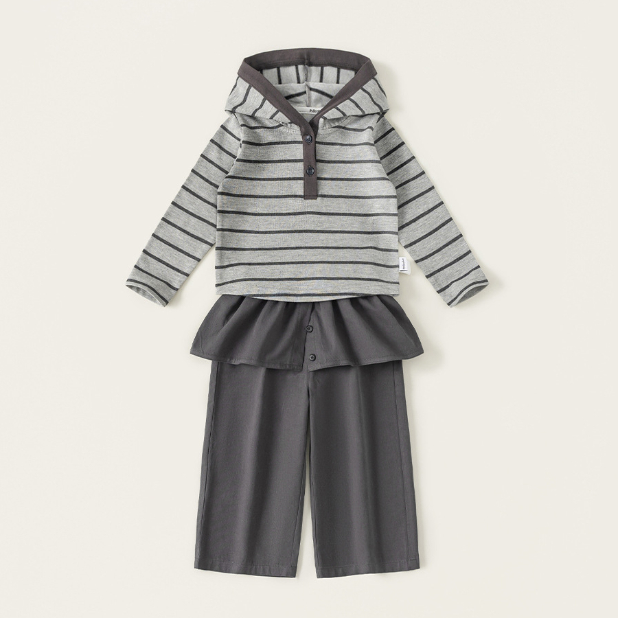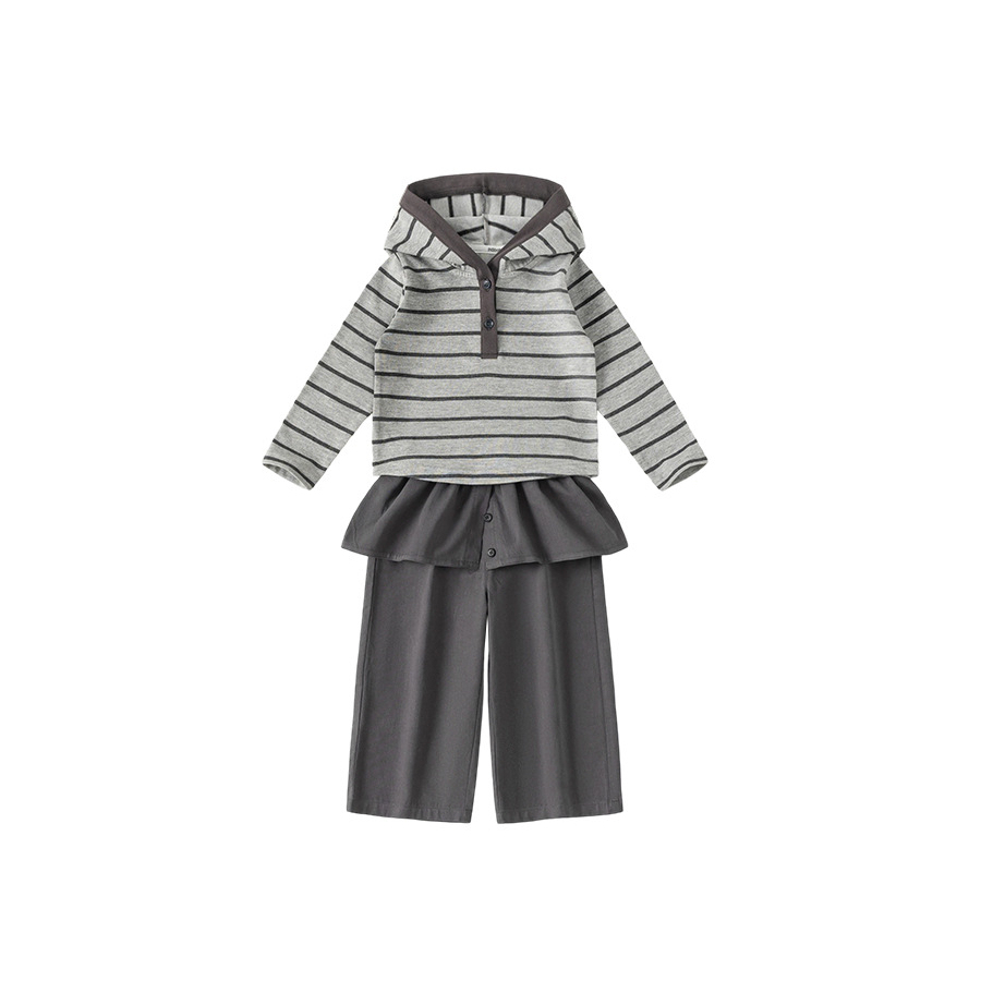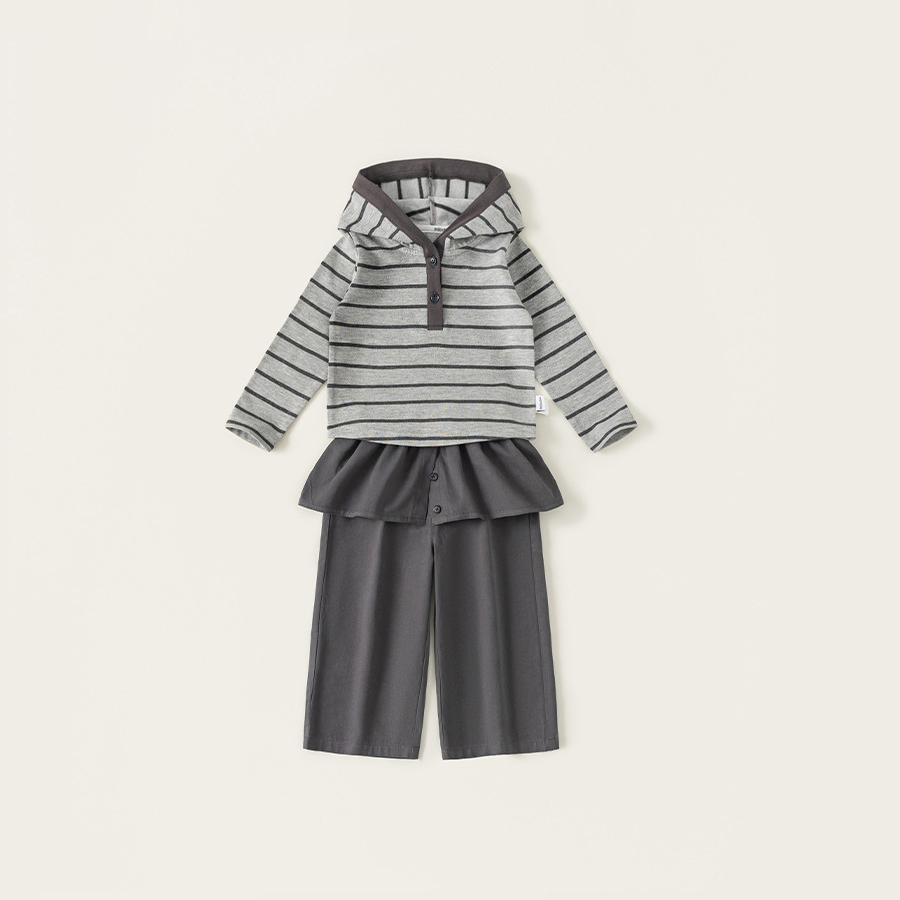 童装女童套装条纹连帽衫屁帘直筒裤儿童两件套春季时尚休闲装