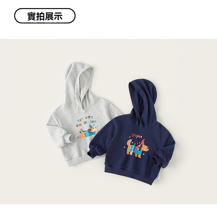 童裝兒童春款新品寬鬆長袖男童狗狗印花上衣女童連帽百搭衛衣