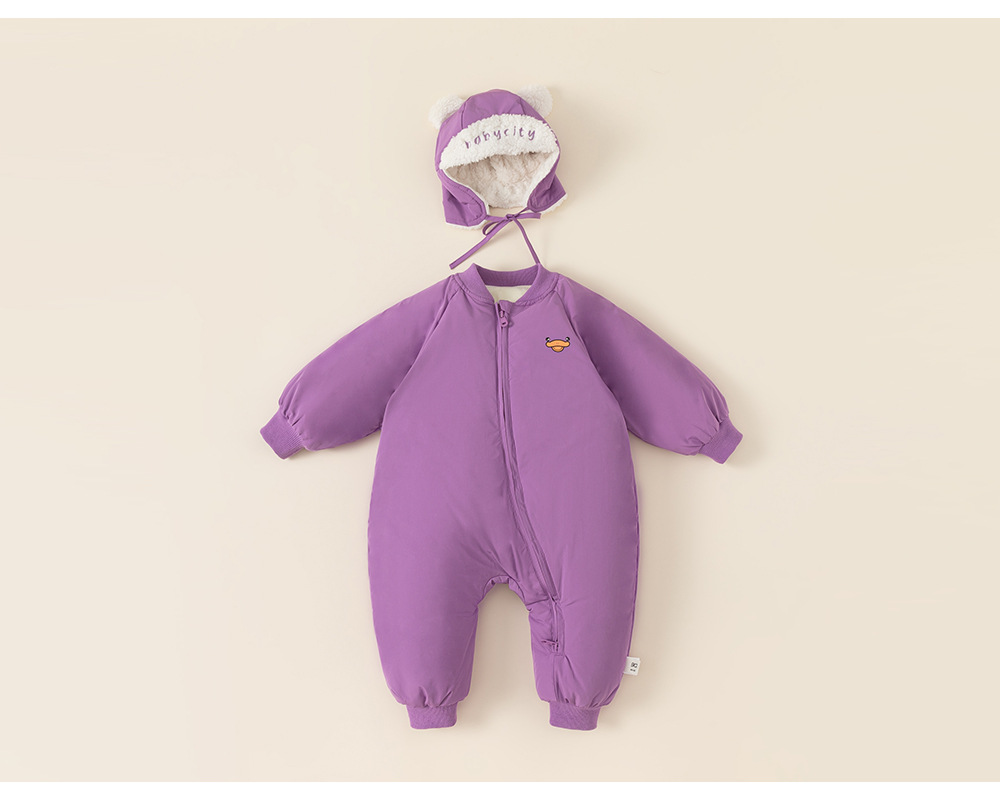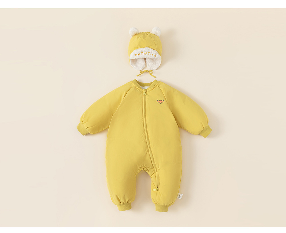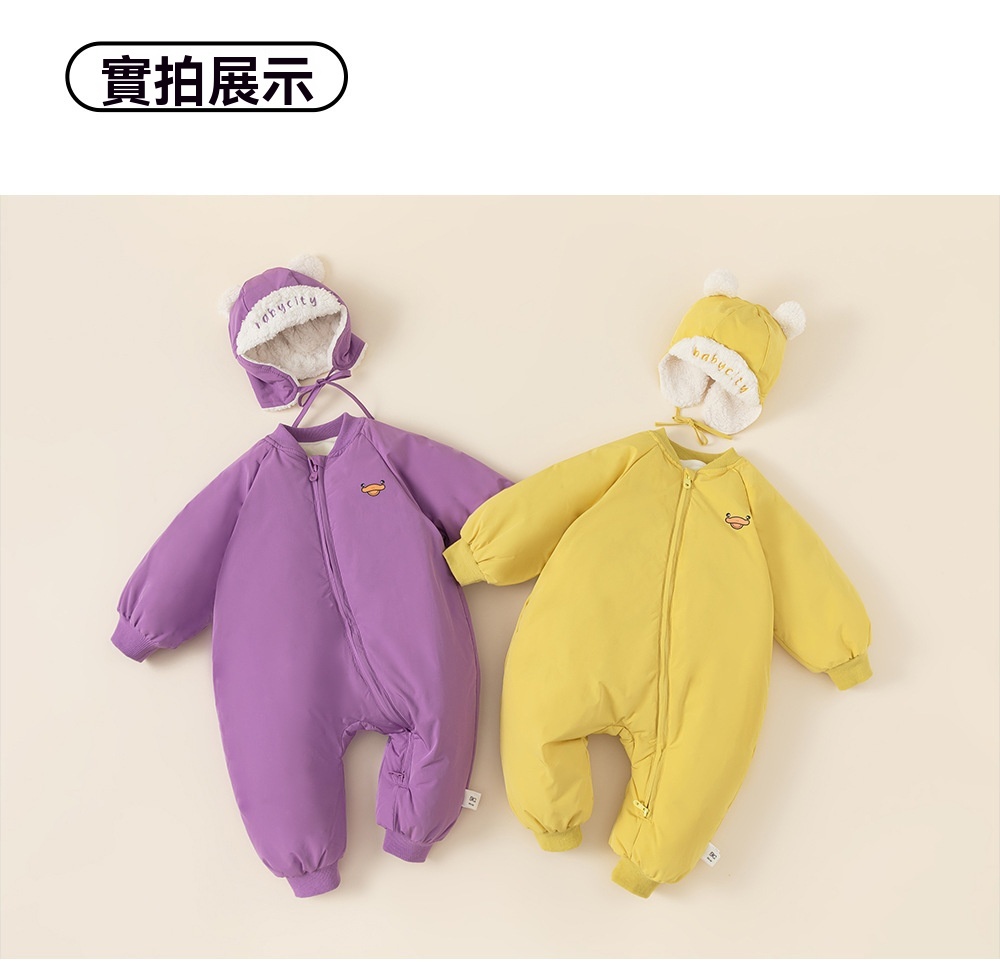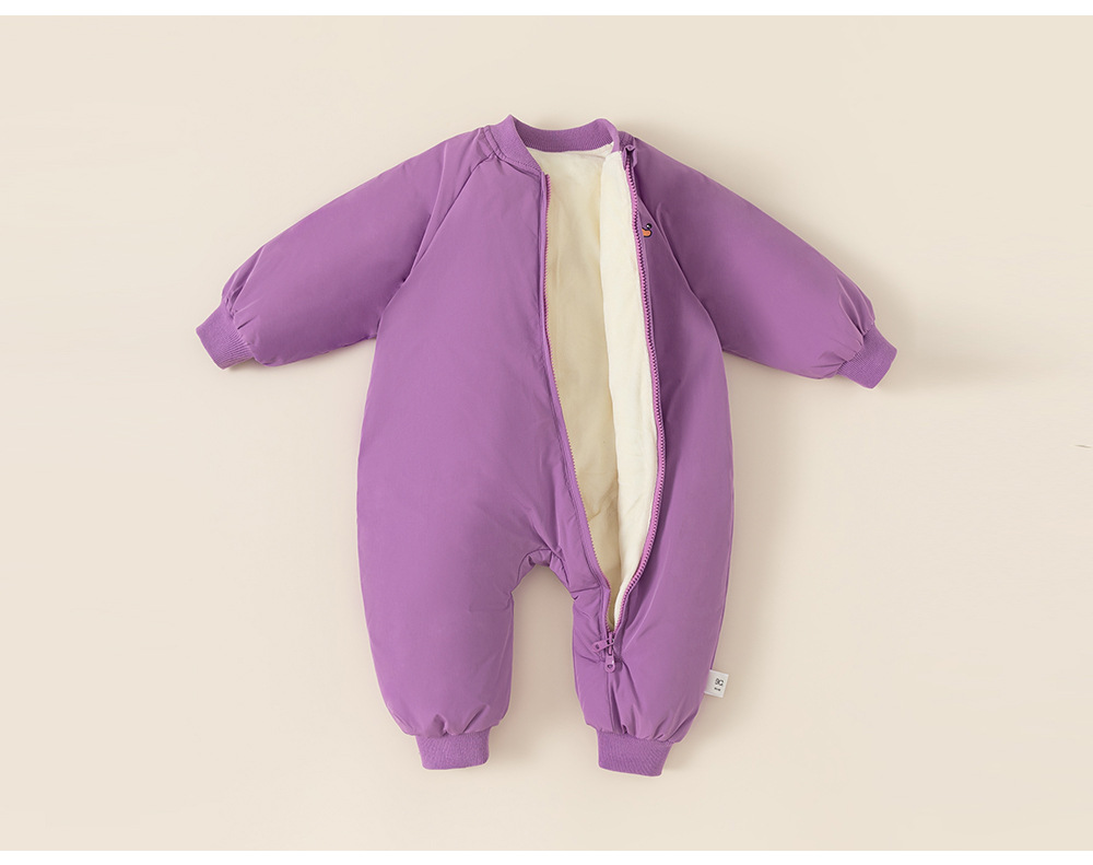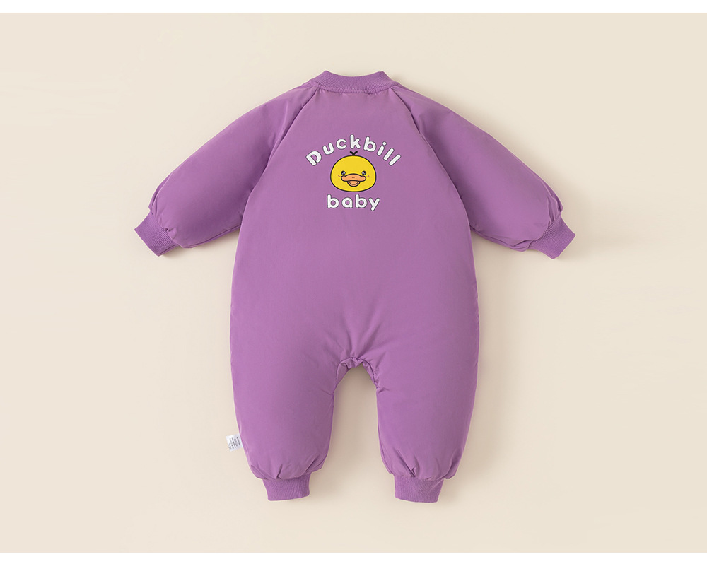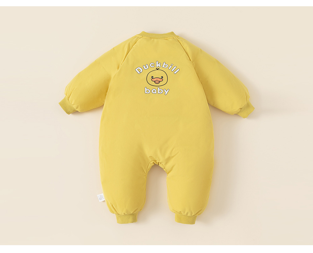 童裝兒童羽絨爬服白鴨絨寶寶斜拉鍊卡通羽絨服帽子包腳嬰幼兒