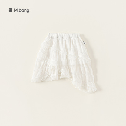 童裝兒童裙子春季新品白色女孩子半身裙百搭不規則小童網紗裙