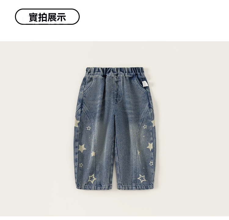 童裝兒童褲子小童長褲星星寶寶牛仔褲春季新品簡約男童彎刀褲