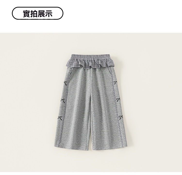 童裝兒童褲子春季新品純色蝴蝶結女童休閒褲屁簾拼接大童長褲
