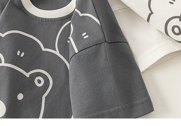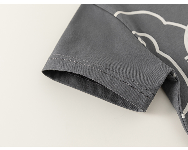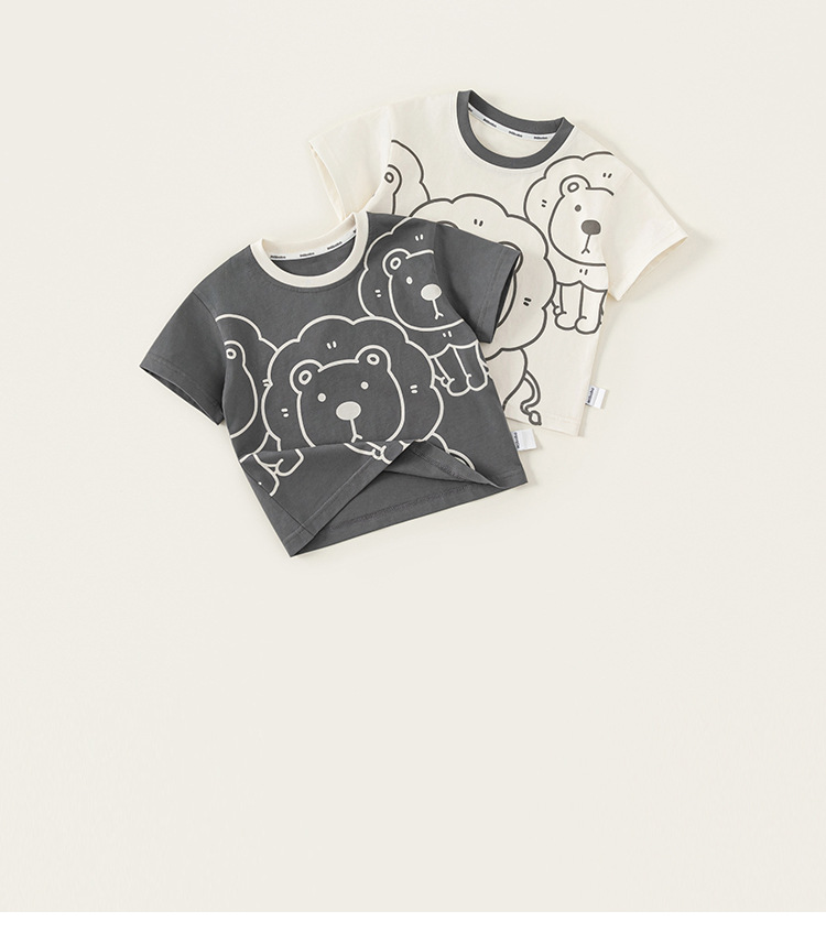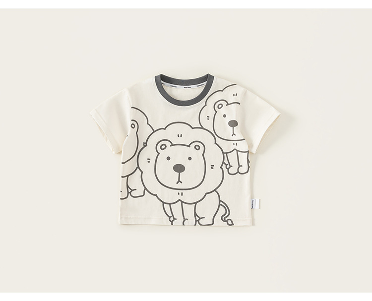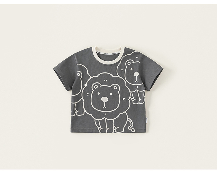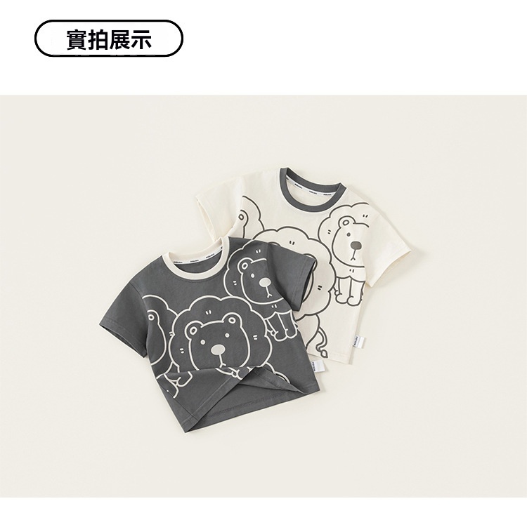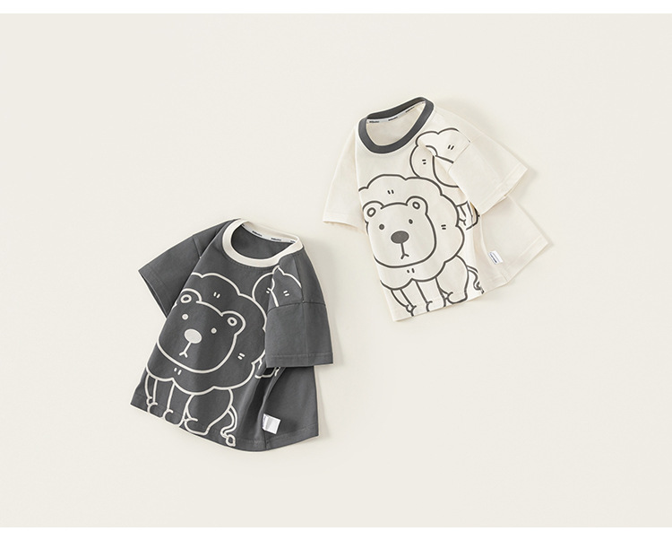 童裝夏季新品寬鬆上衣男童撞色圓領衣服卡通獅子印花短袖T恤