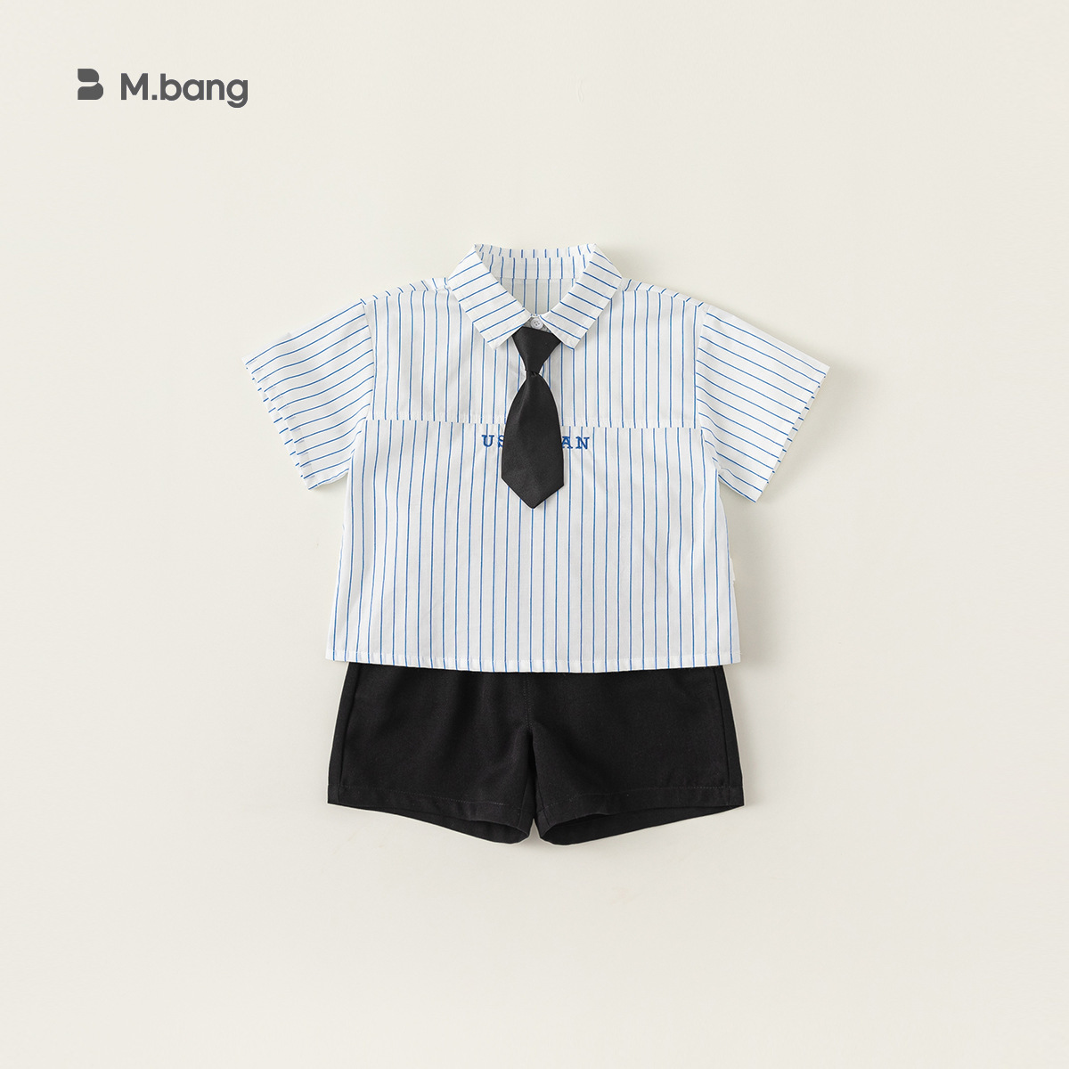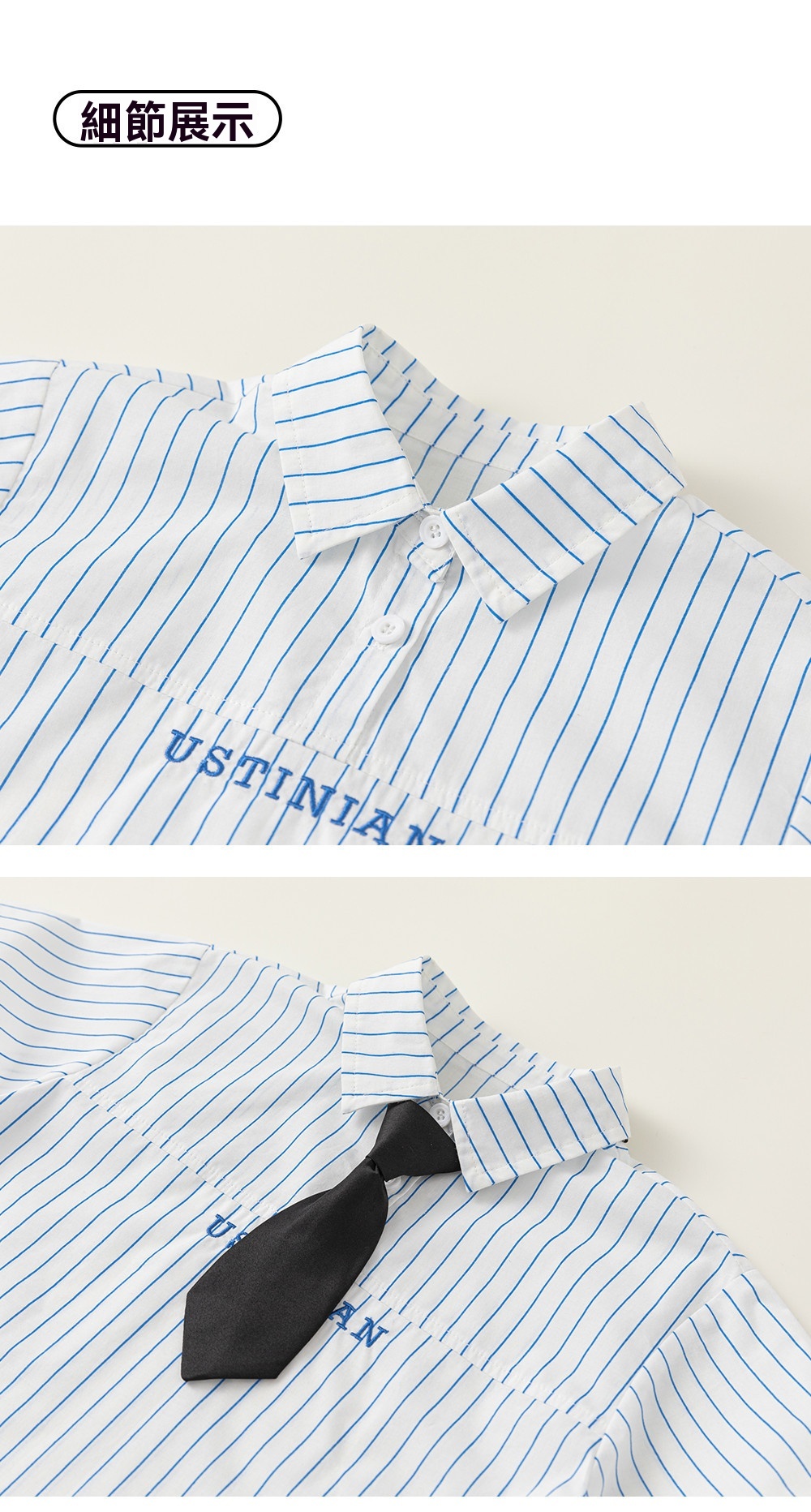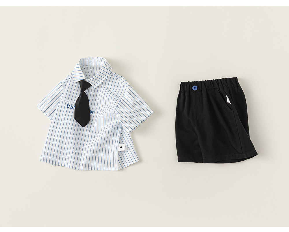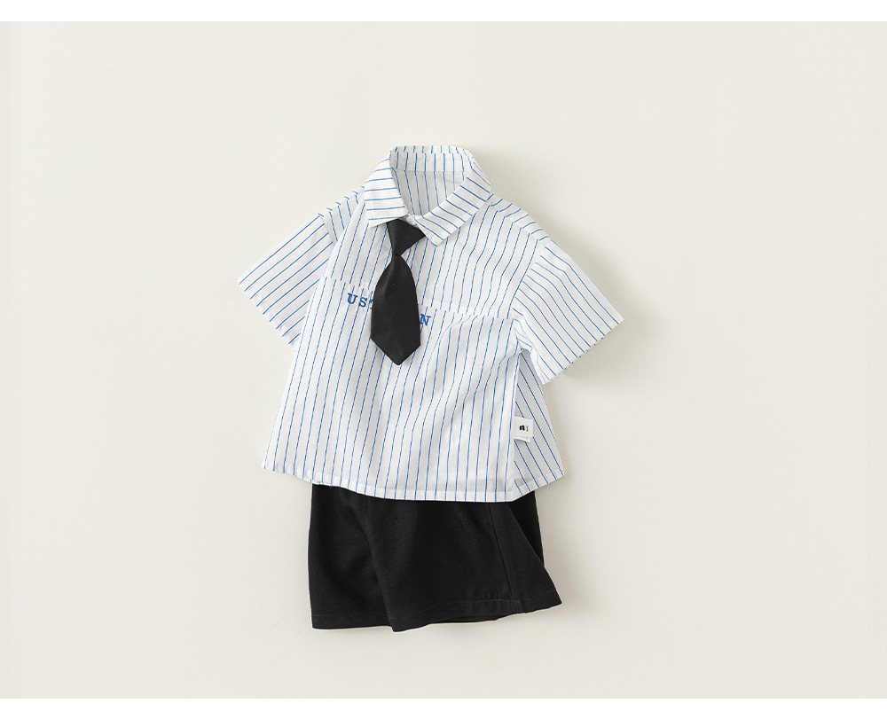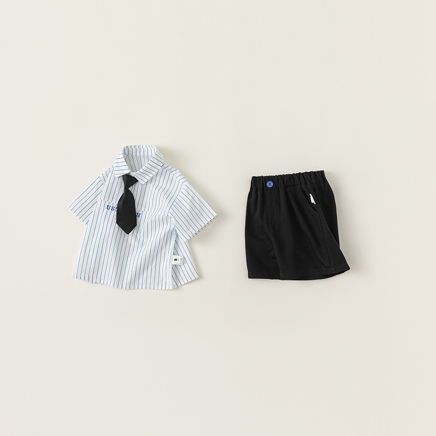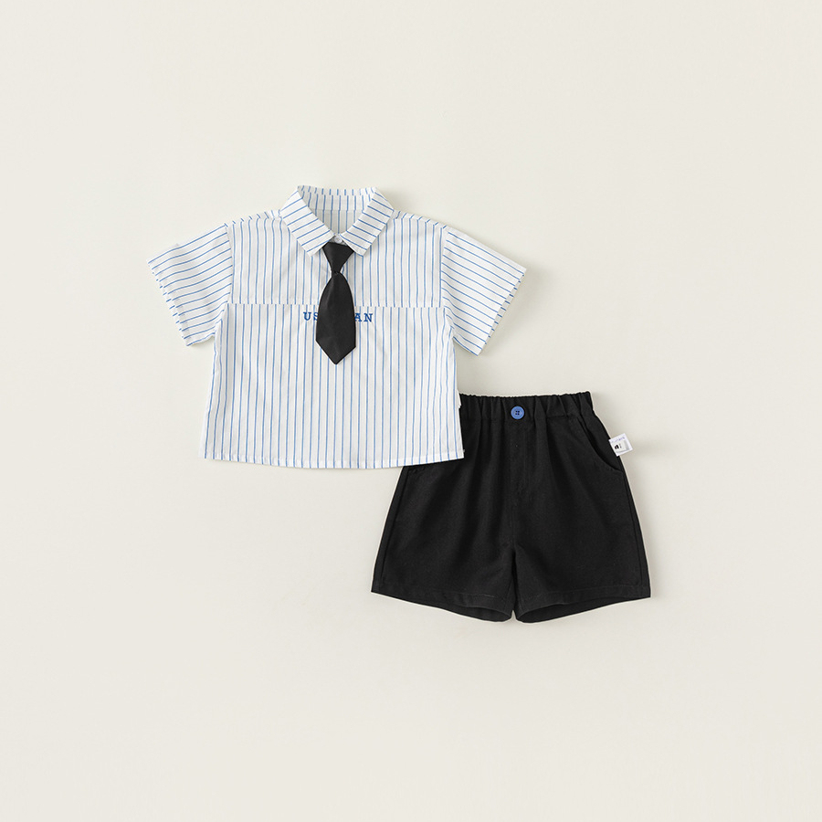 童裝夏季童裝男童學院風兩件套班服兒童領帶條紋襯衫小童套裝
