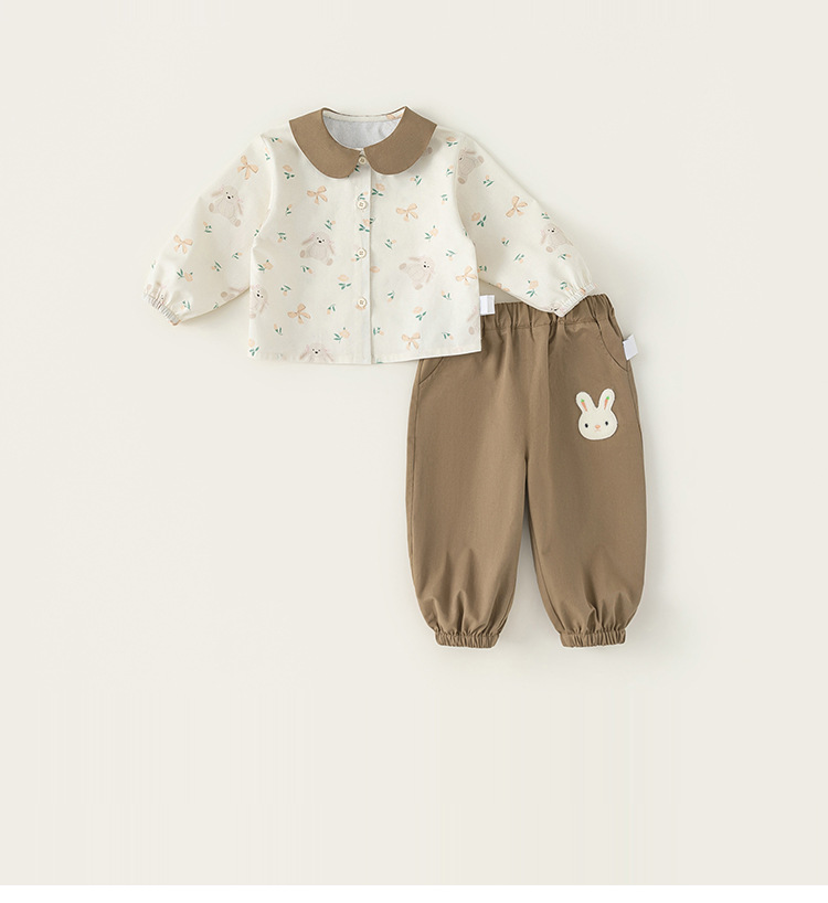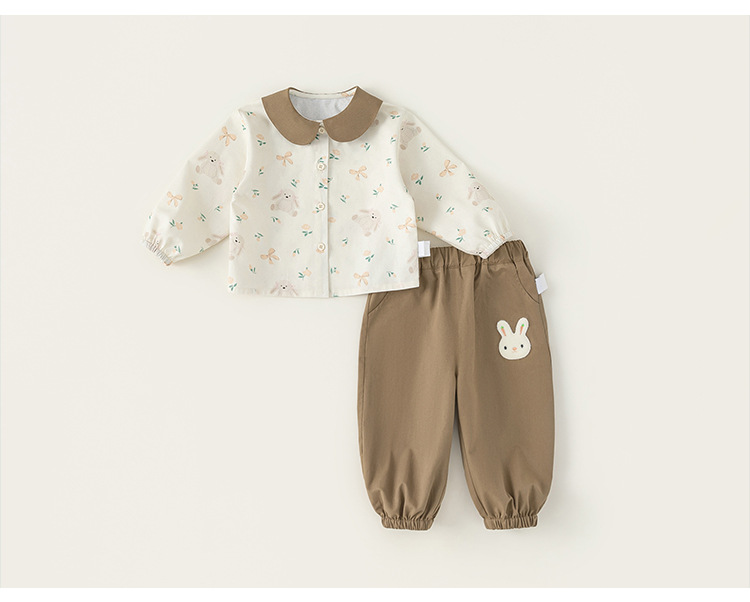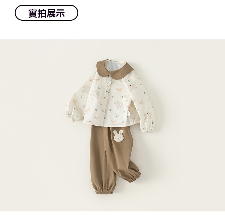 童裝女寶寶秋裝套裝2025新款碎花襯衫女童束腳褲兩件套春秋