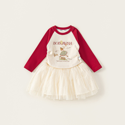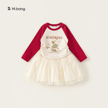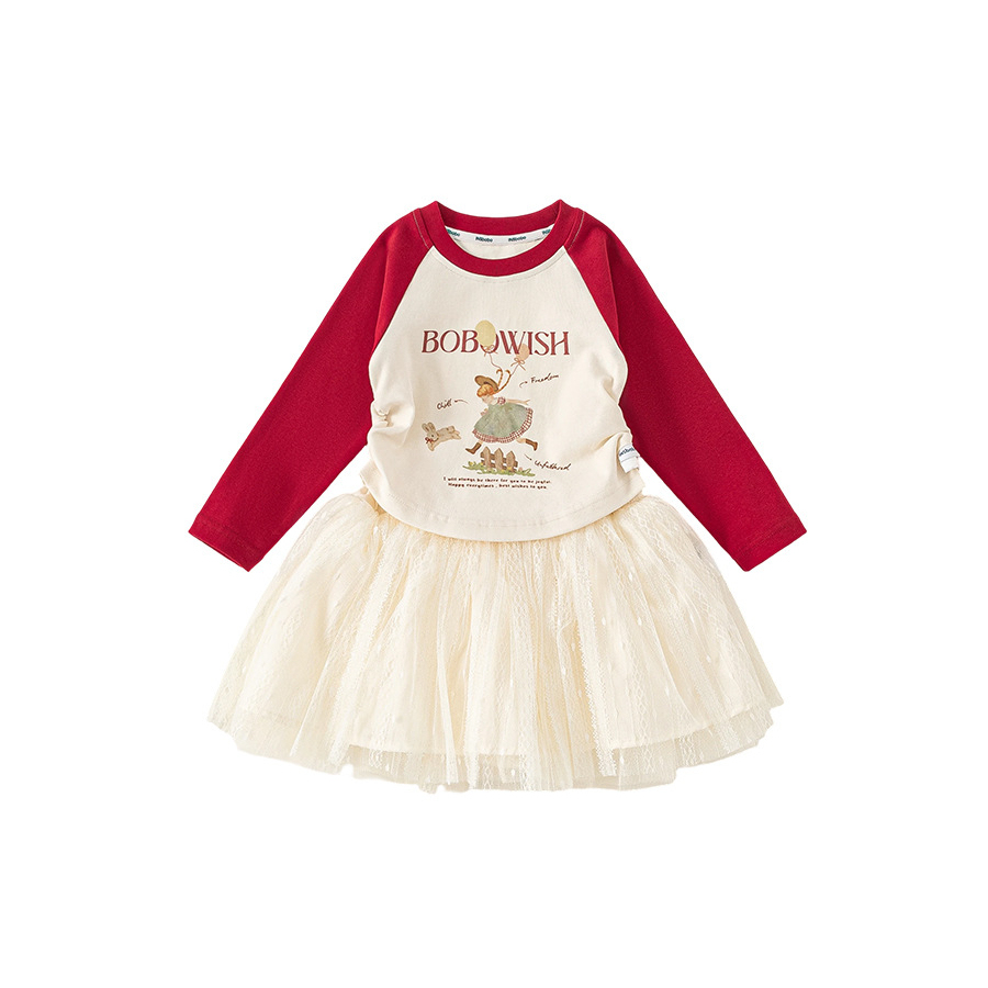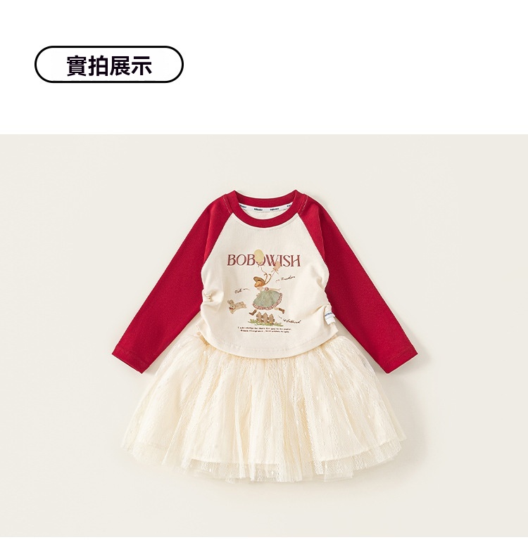 童裝女童套裝插肩袖修身T恤網紗半身裙兒童兩件套女孩子衣服