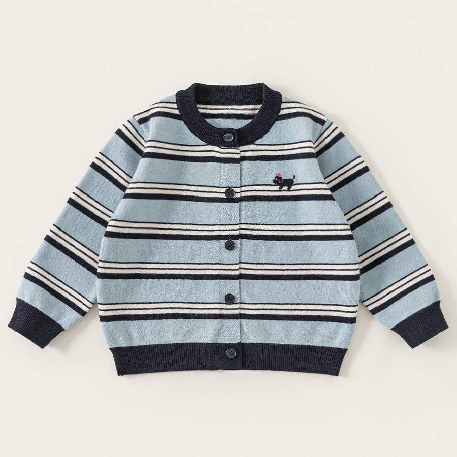 童裝女童毛衣春季新品條紋百搭大孩子開衫溫柔風洋氣兒童外套