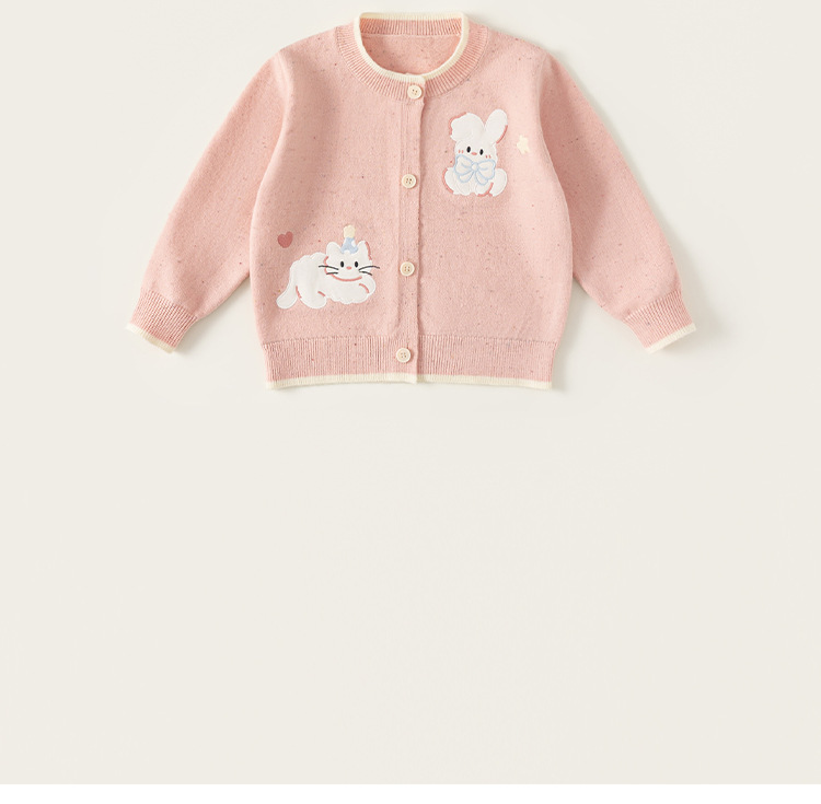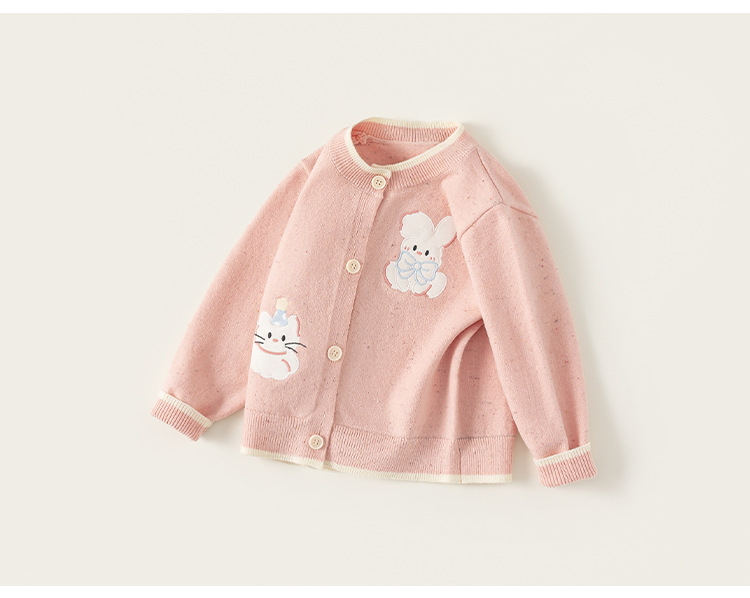 童裝女童毛衣春季新品粉色甜美寶寶上衣開衫毛線針織兒童外套