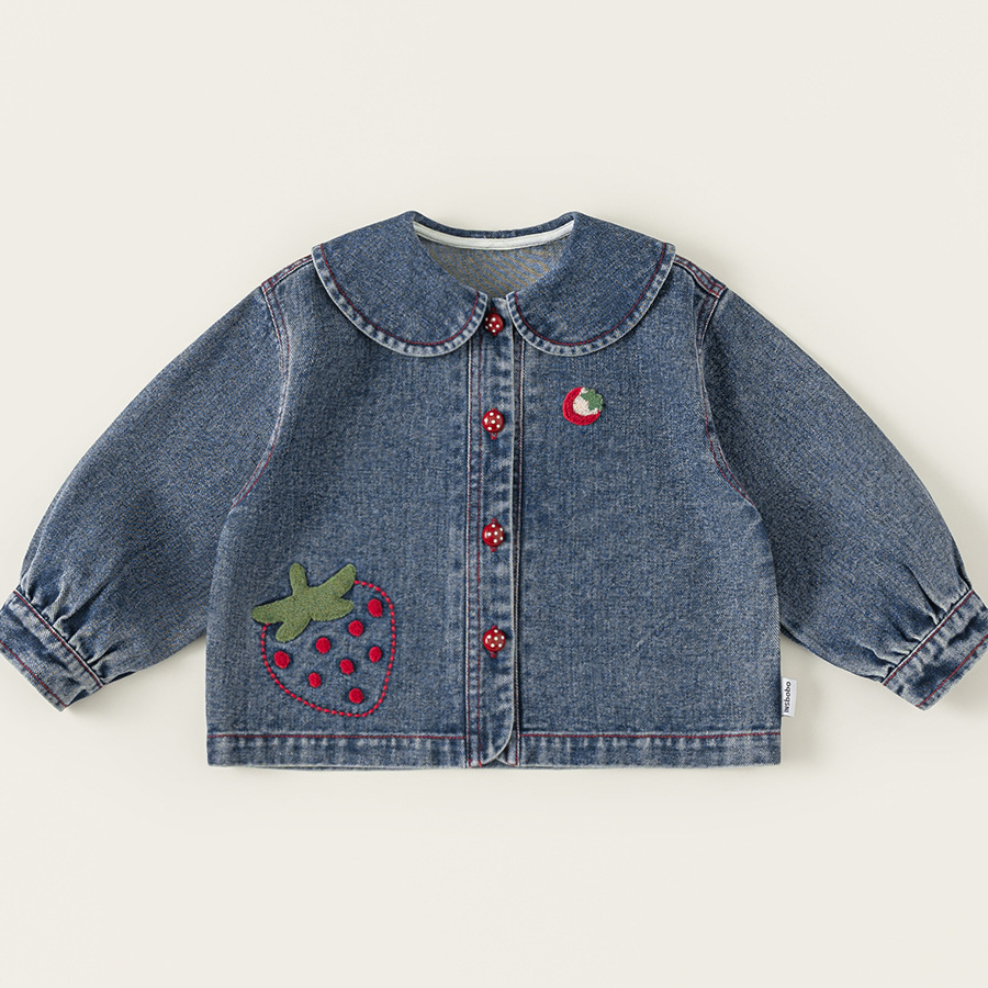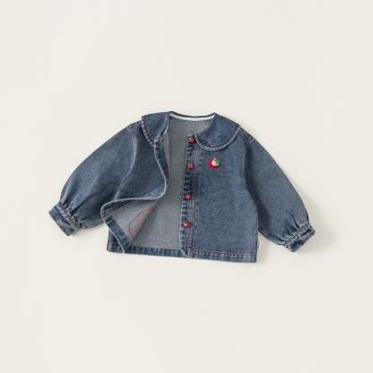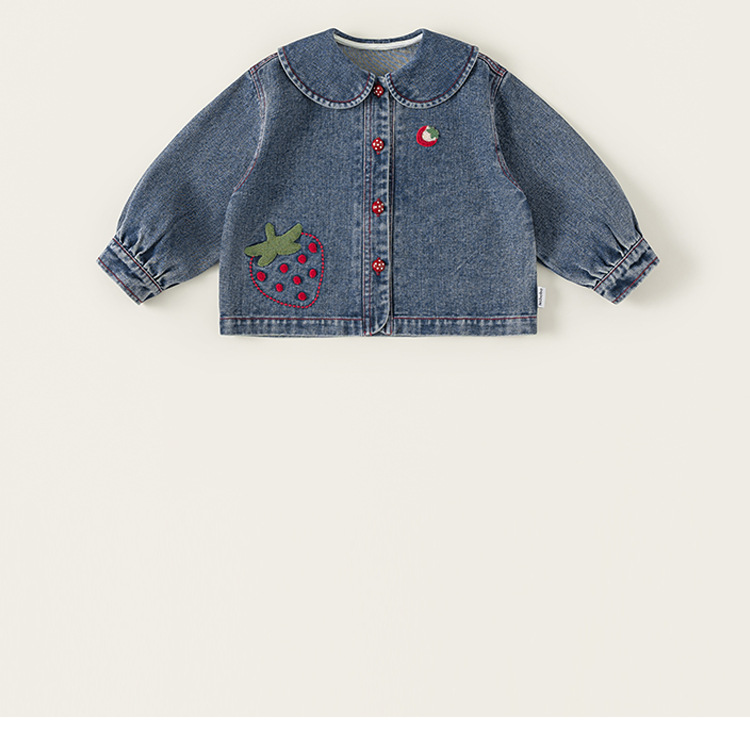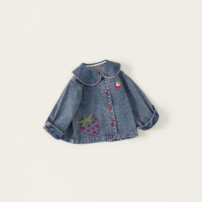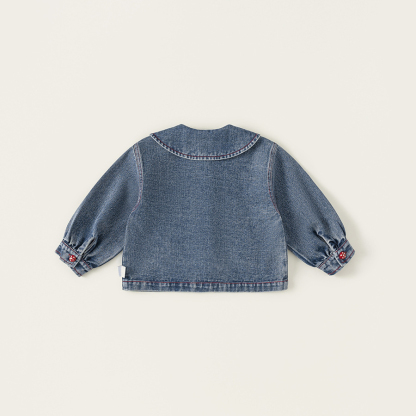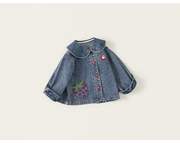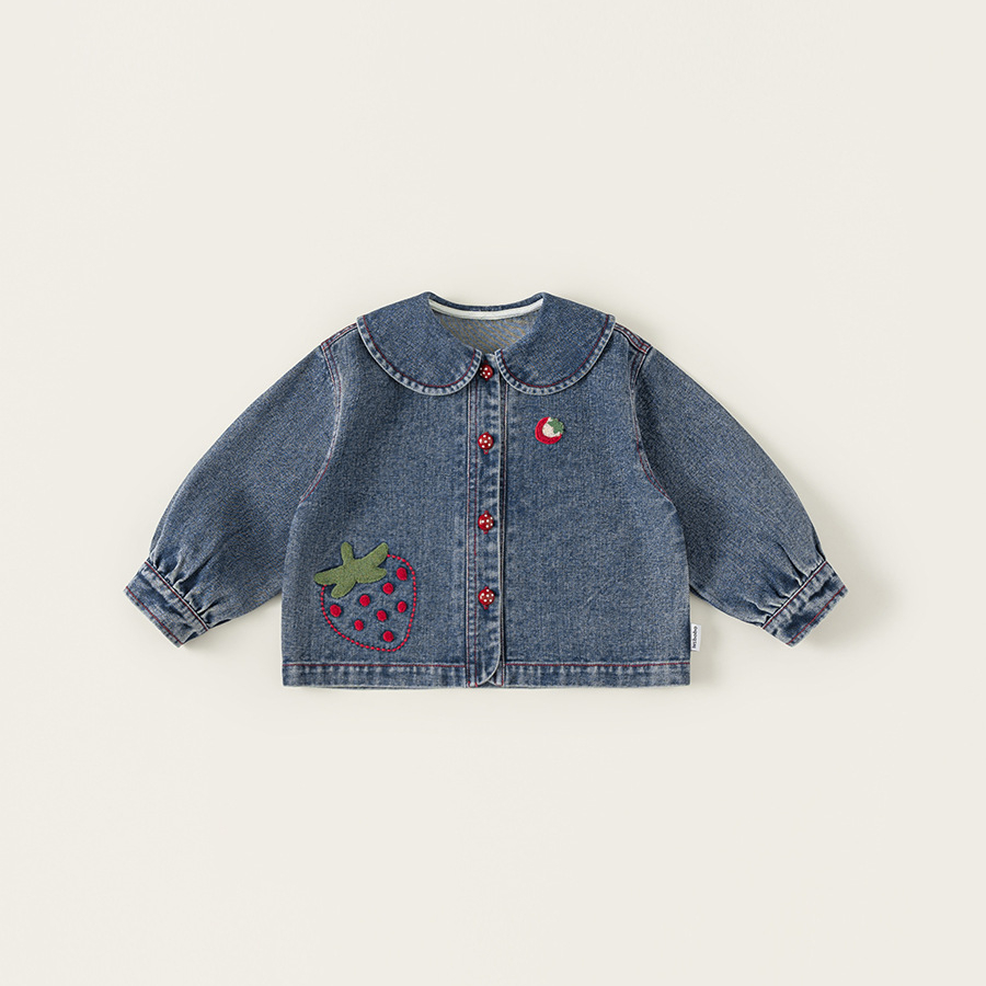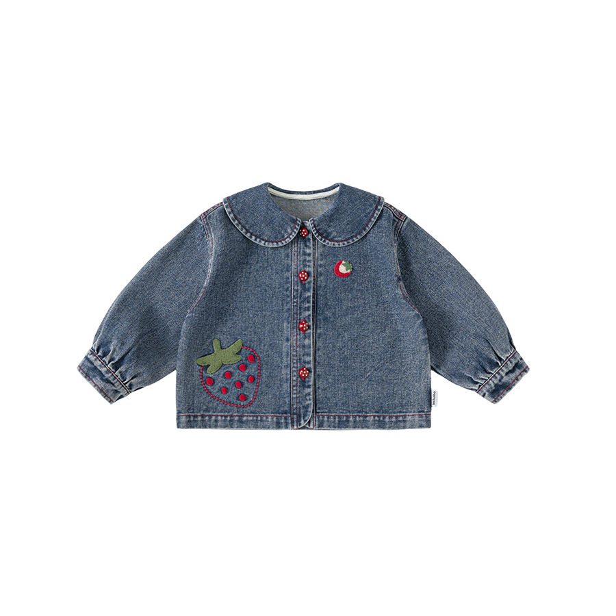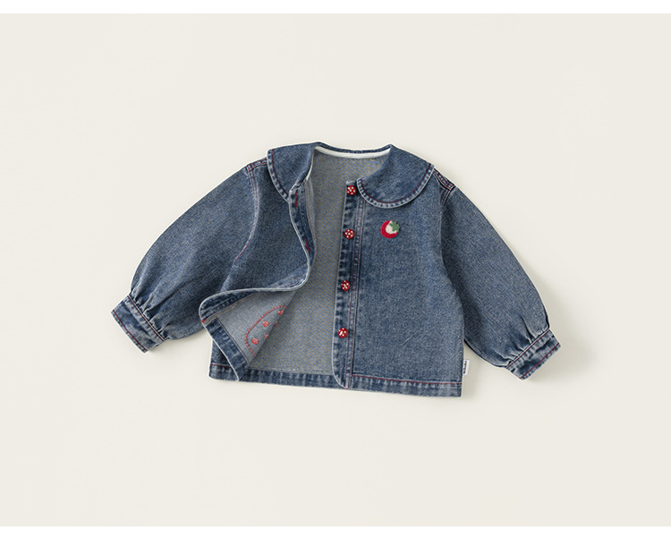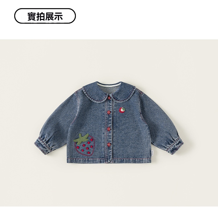 童裝女童牛仔衣春季新品翻領卡通寶寶長袖衣服百搭兒童外套