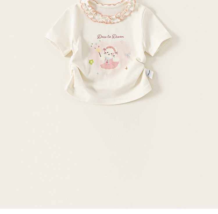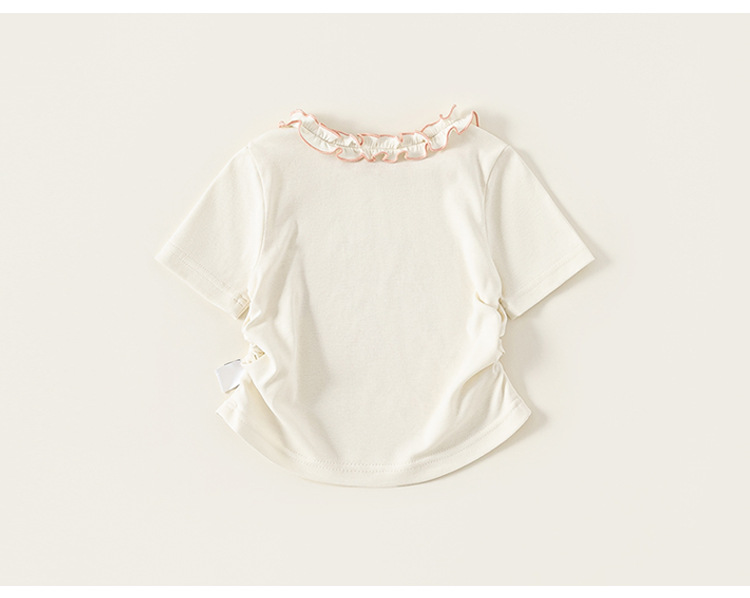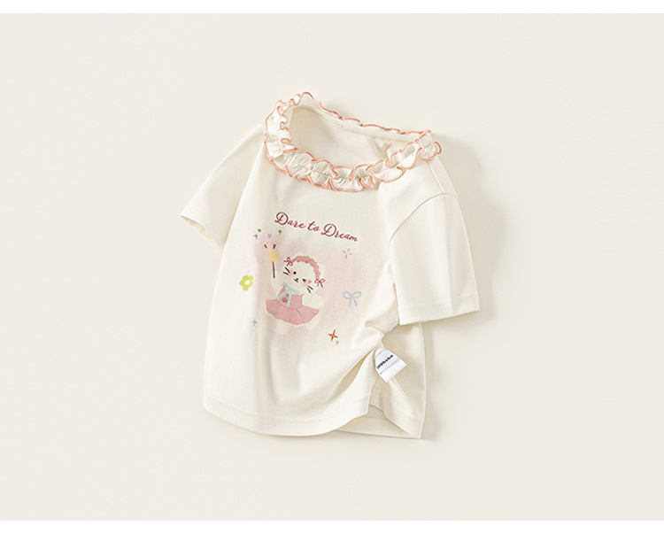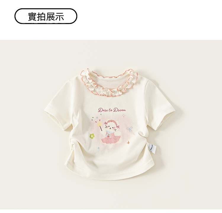 童裝女童短袖夏季新品花邊圓領女孩子上衣甜美可愛兒童T恤