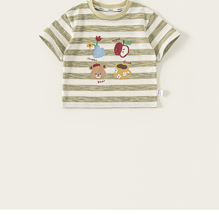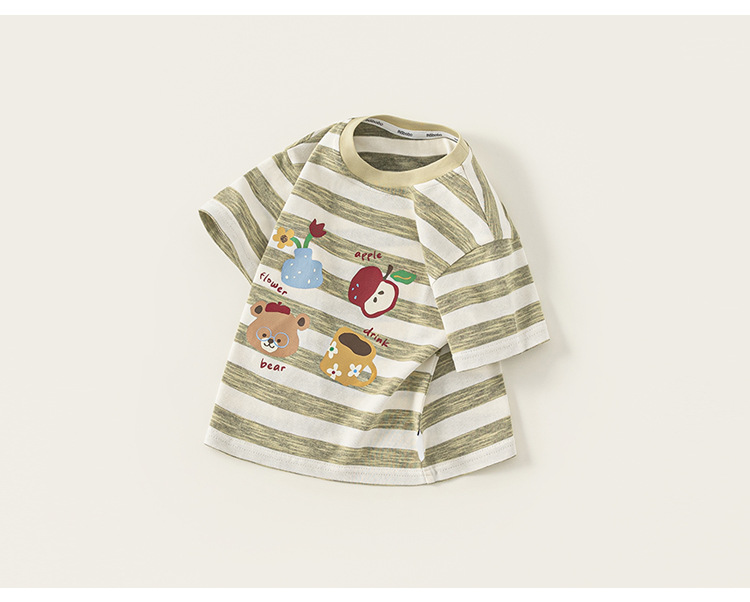 童裝女童短袖夏季男童新品條紋圓領寶寶T恤可愛印花小童上衣