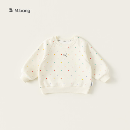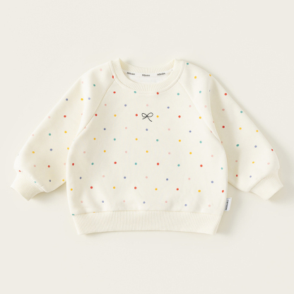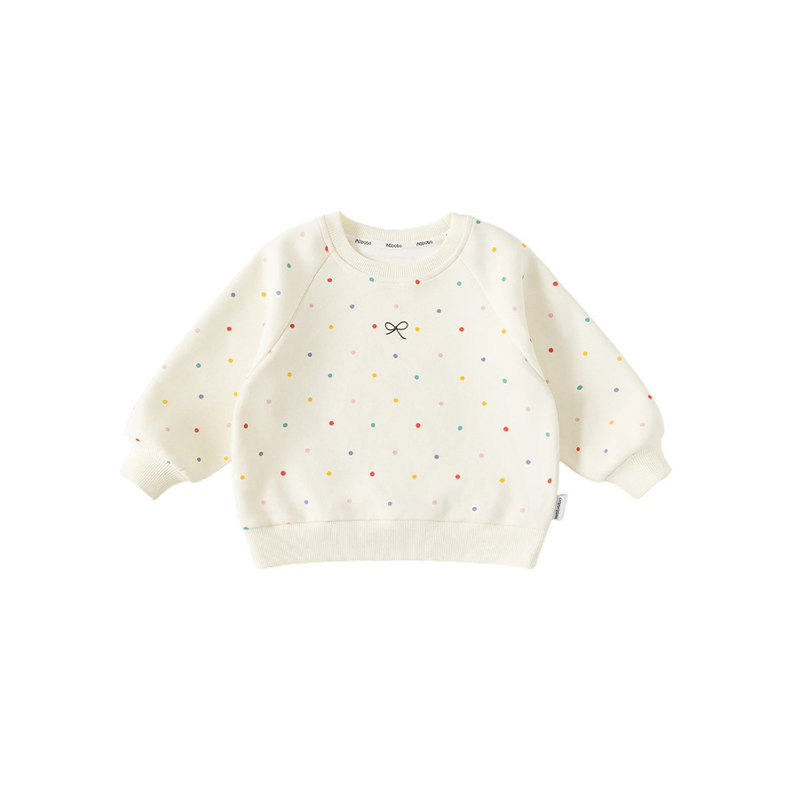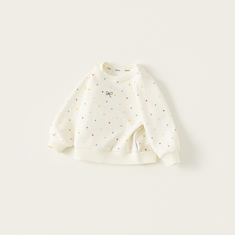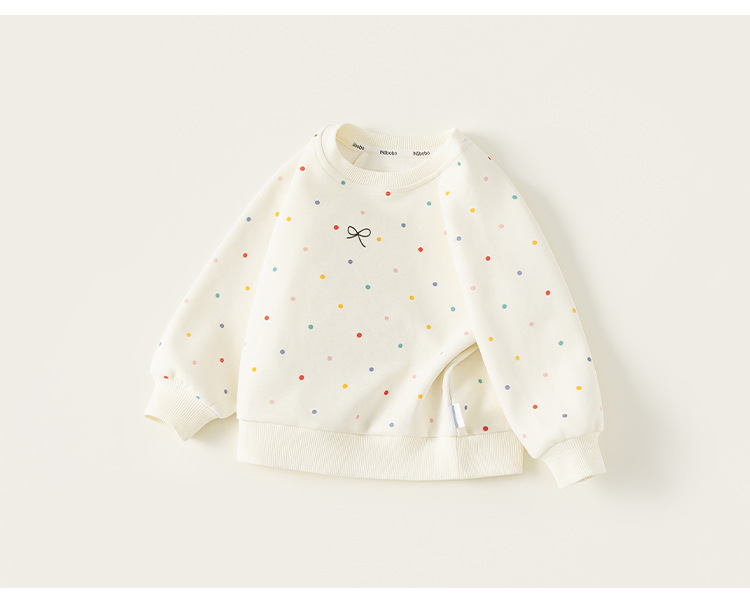 童裝女童衛衣春季新品彩色波點寶寶上衣蝴蝶結印花兒童衣服