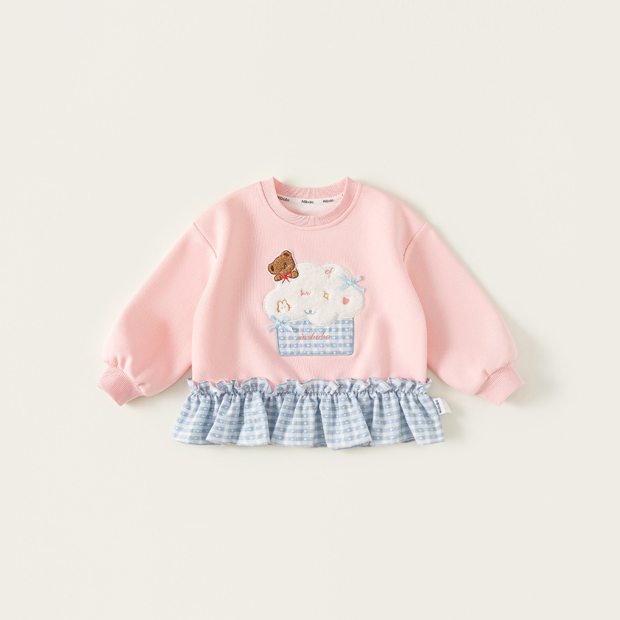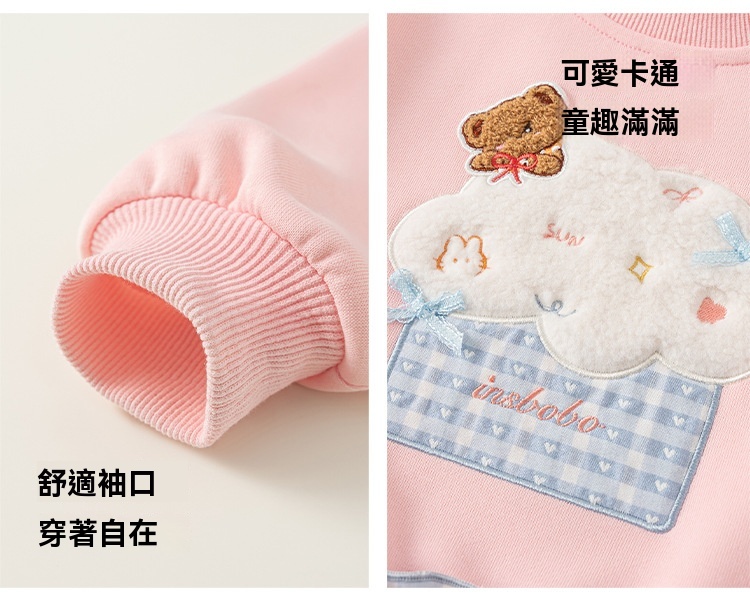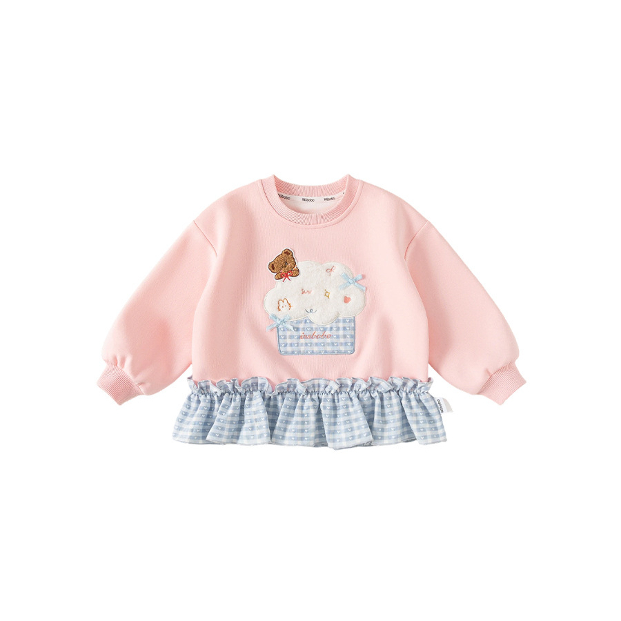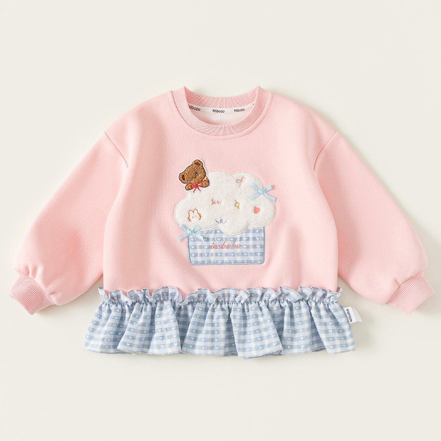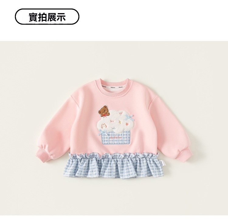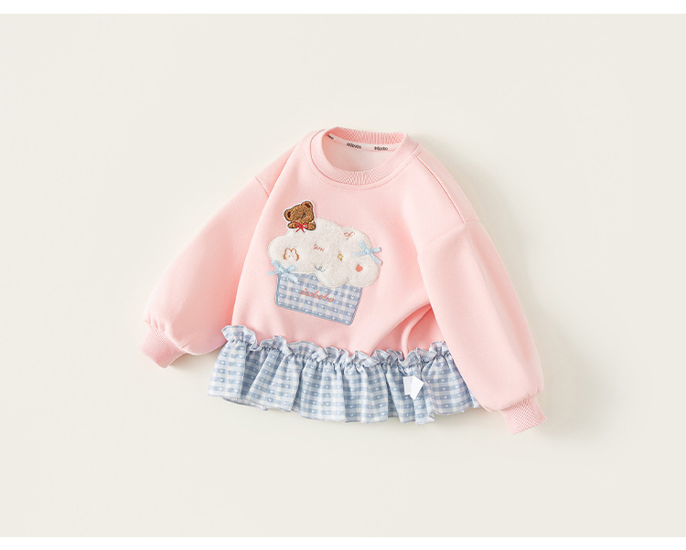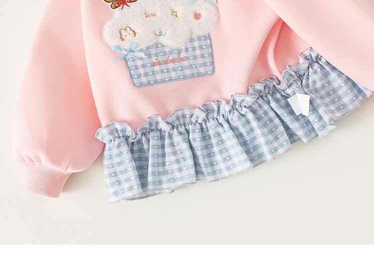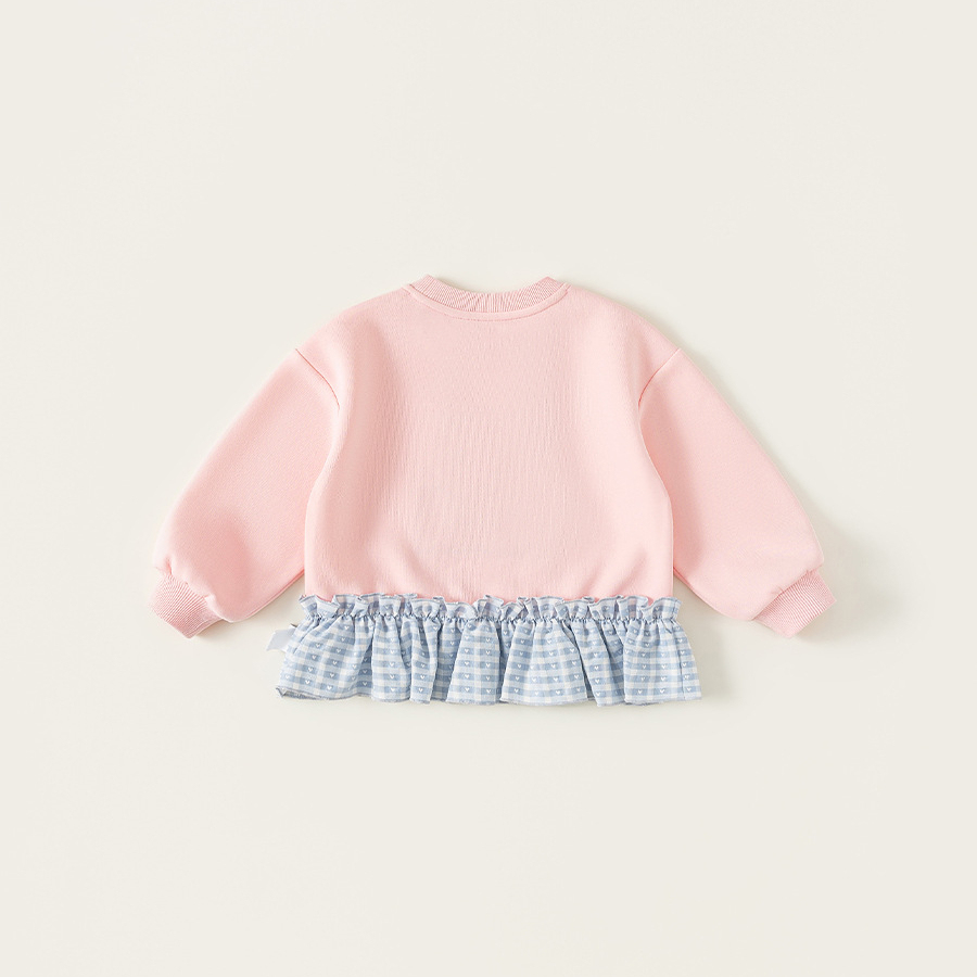 童裝女童衛衣春季粉色甜美寶寶上衣格子拼接兒童長袖套頭衫
