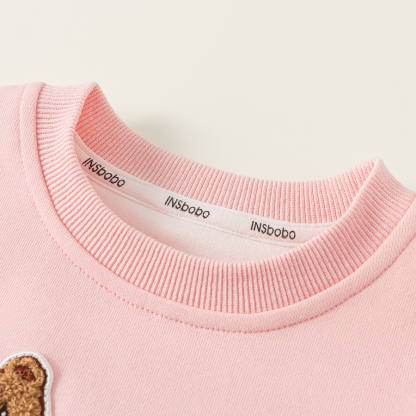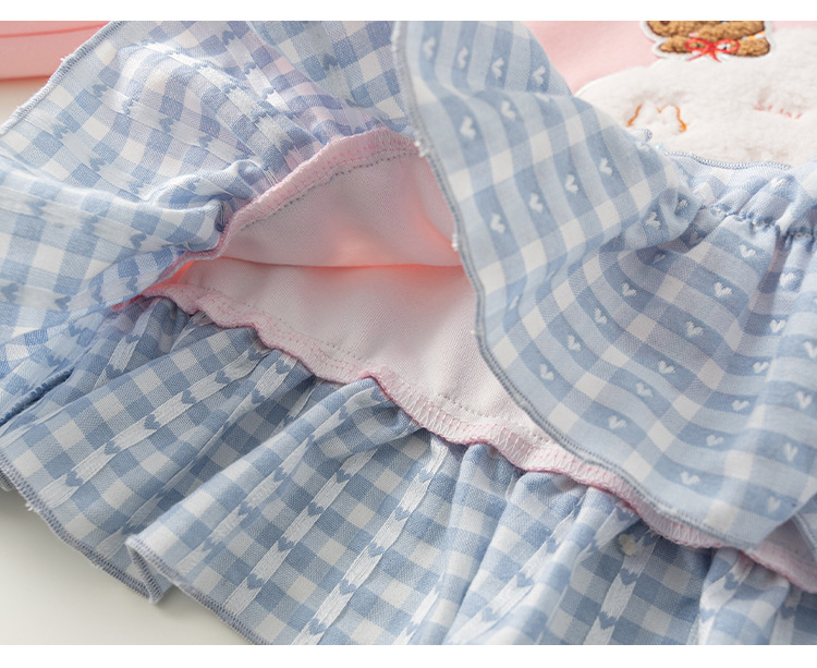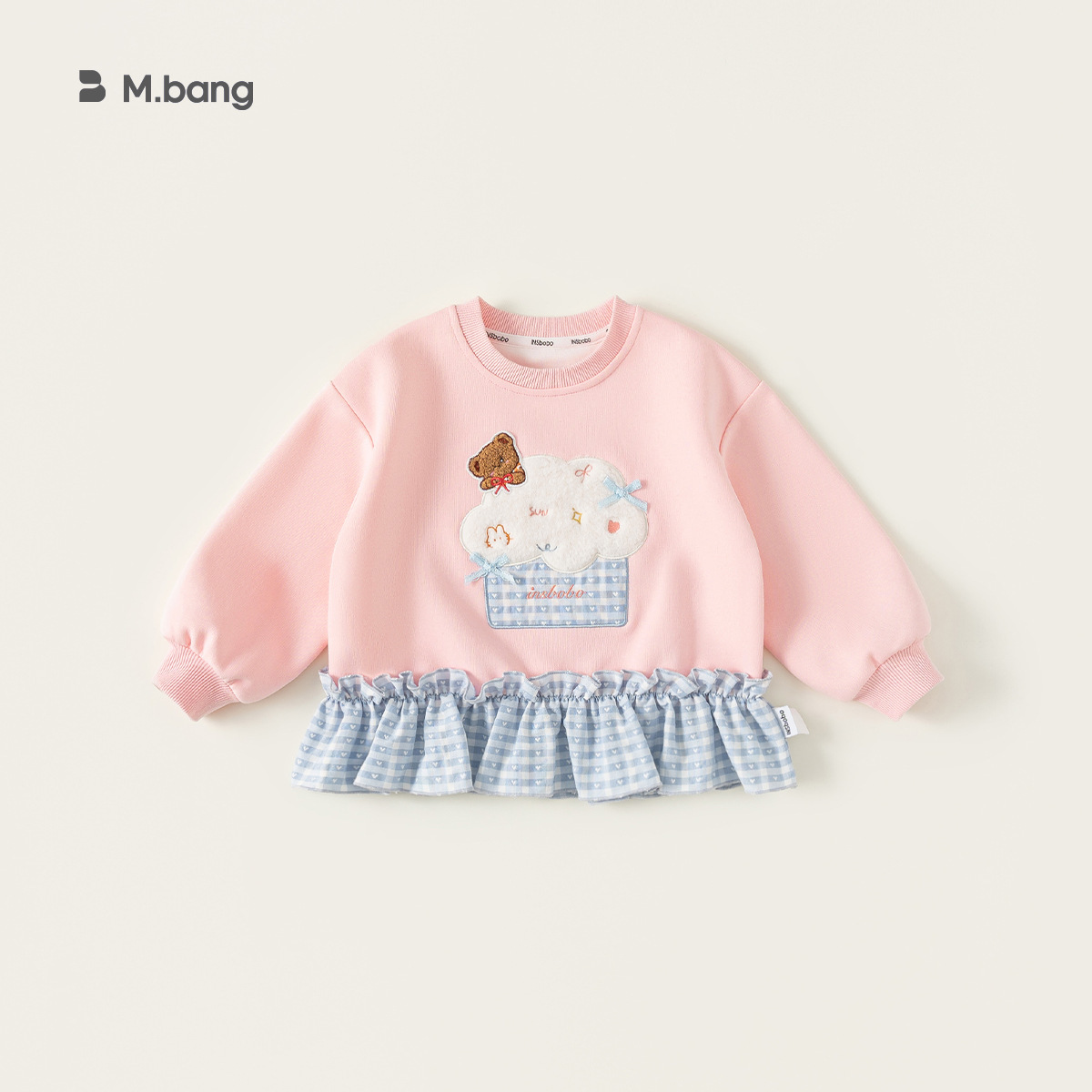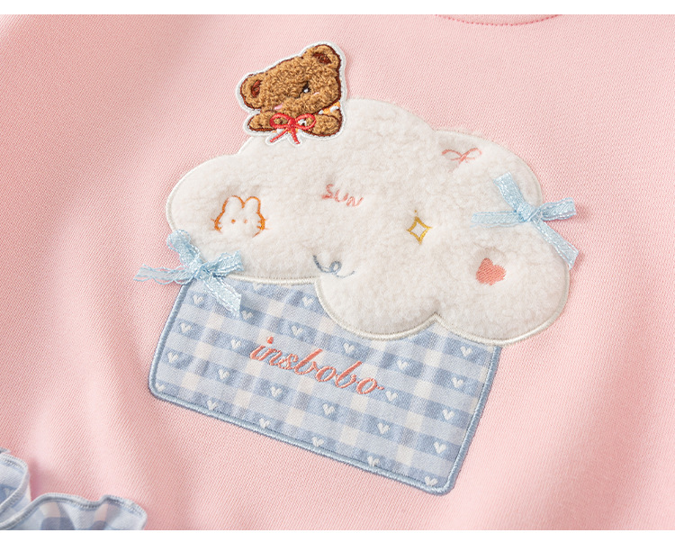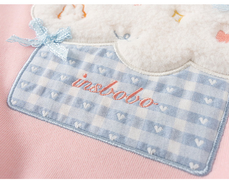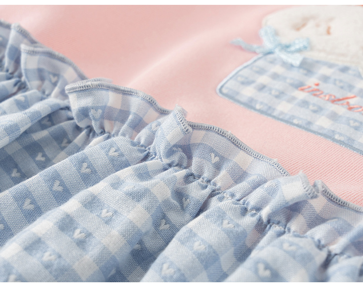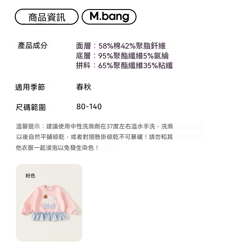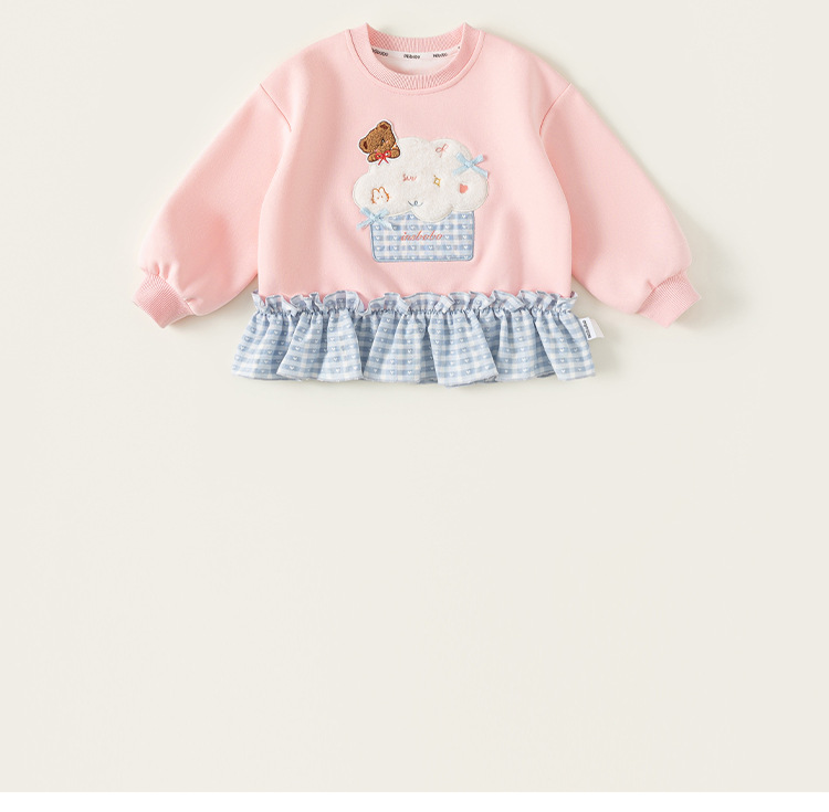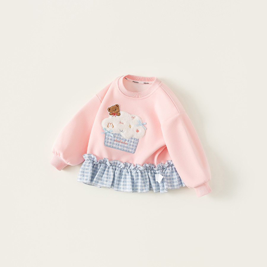 童裝女童衛衣春季粉色甜美寶寶上衣格子拼接兒童長袖套頭衫