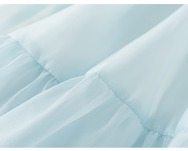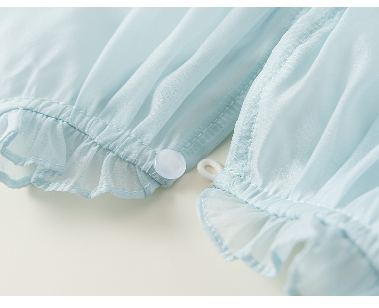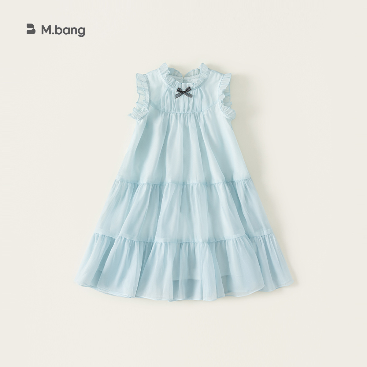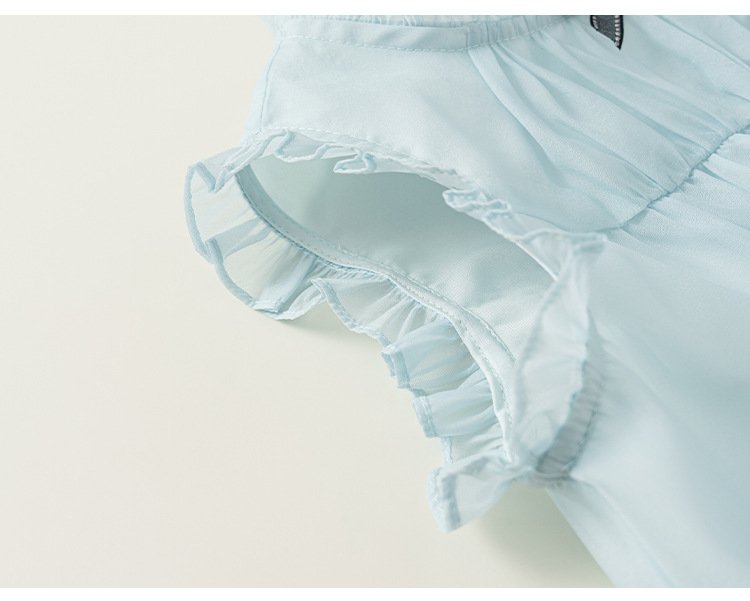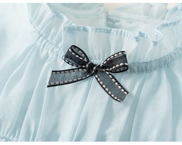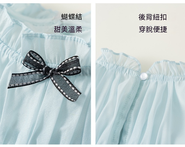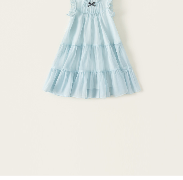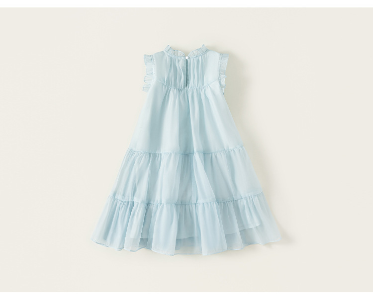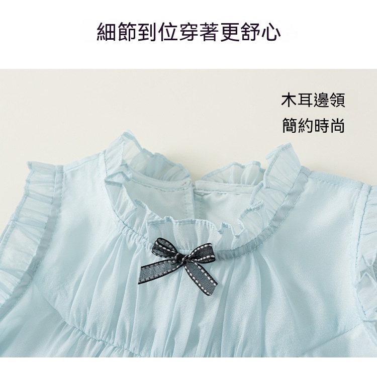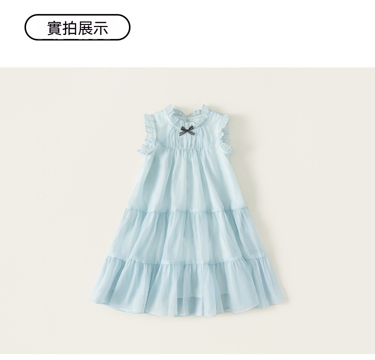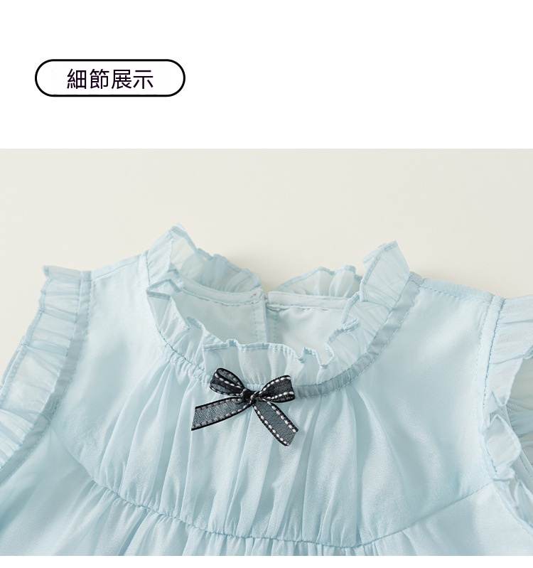 童裝女童裙子藍色無袖兒童蛋糕裙飛袖立領大童公主裙