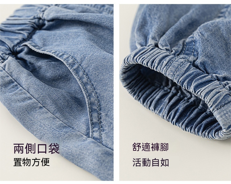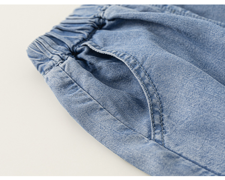 童裝女童褲子夏季新品純色簡約男童牛仔褲天絲寬鬆兒童束腳褲