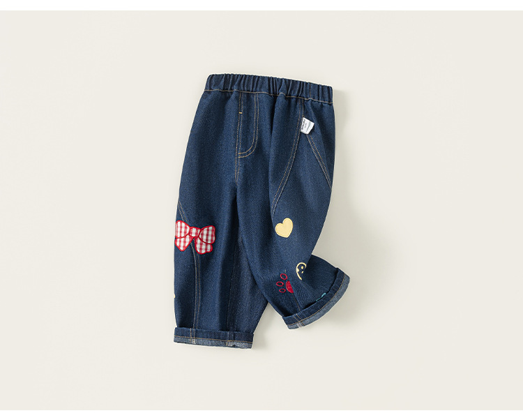 童裝女童褲子春季新品蝴蝶結兒童牛仔褲寬鬆寶寶長褲
