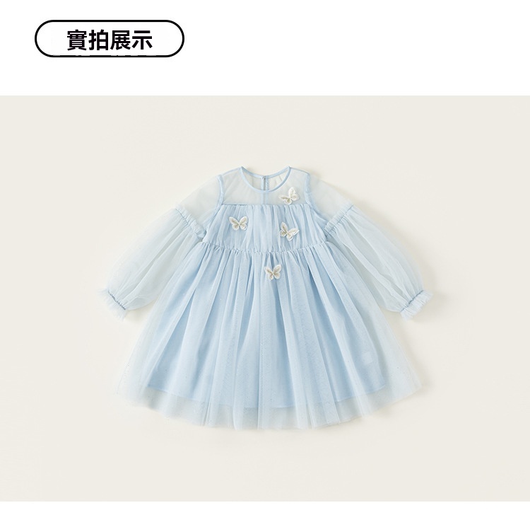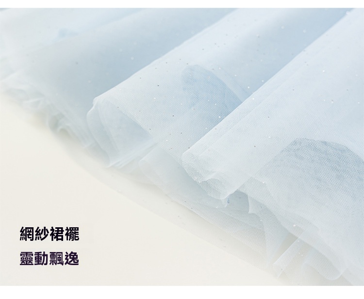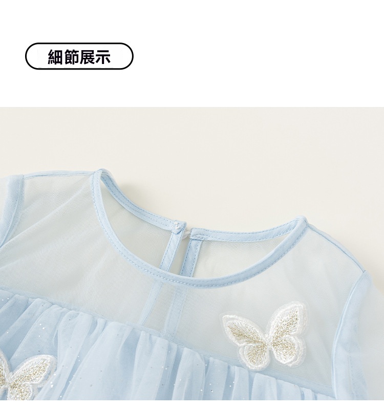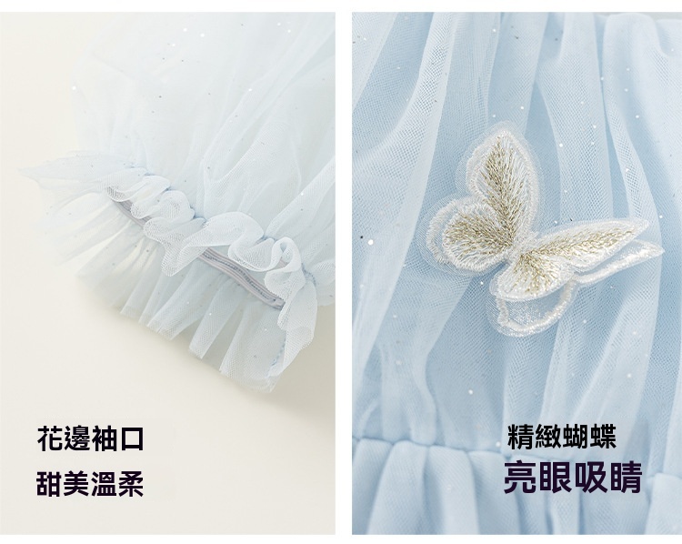 童裝女童連衣裙藍色女孩子公主裙仙女裙生日亮片兒童網紗裙
