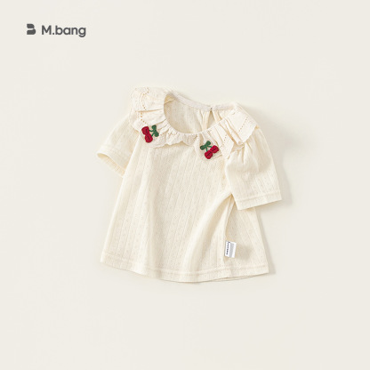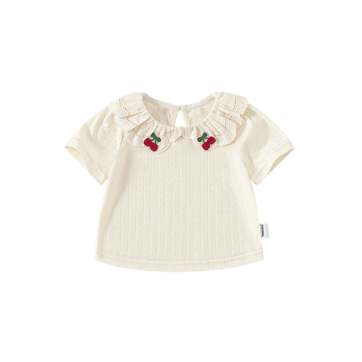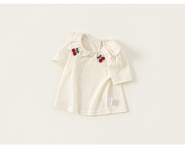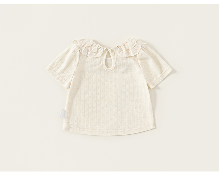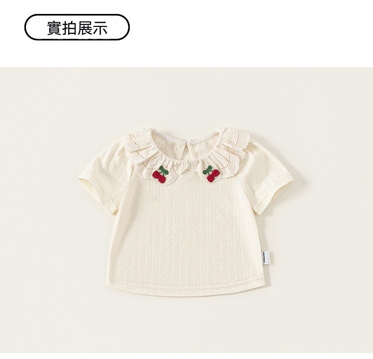 童裝女童T恤夏季新品花邊領兒童短袖純色百搭寶寶夏天衣服