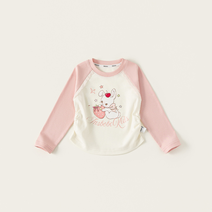 童裝女童T恤春季新品插肩袖卡通兒童長袖寶寶上衣