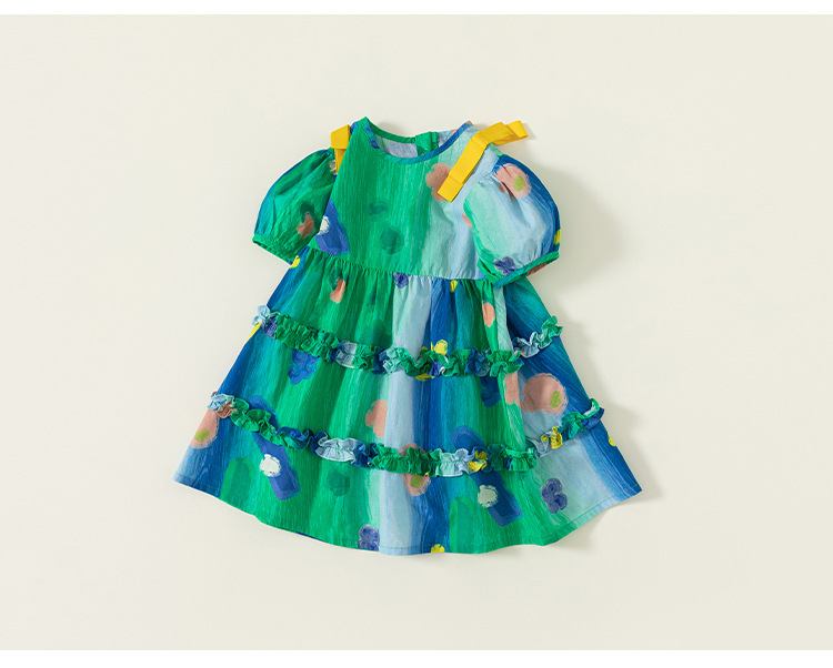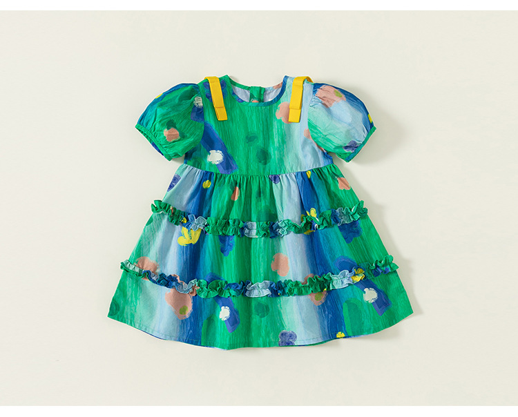 童裝姐弟裝塗鴉印花襯衫女童連衣裙扎染公主裙子兒童休閒套裝