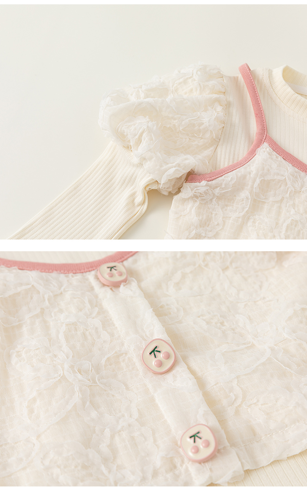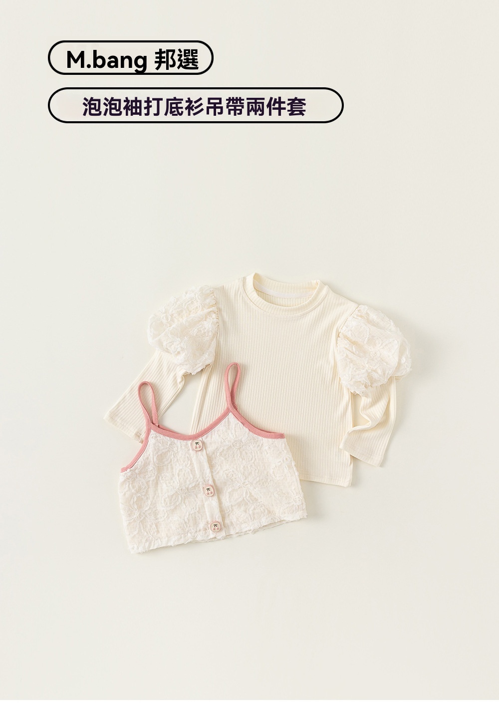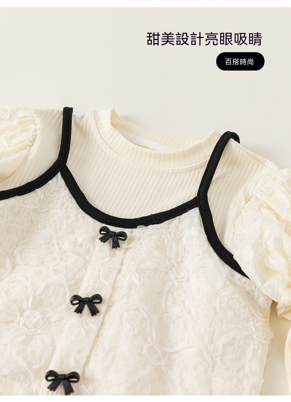 童裝新款女童上衣泡泡袖打底衫吊帶兩件套女孩子洋氣套裝秋裝