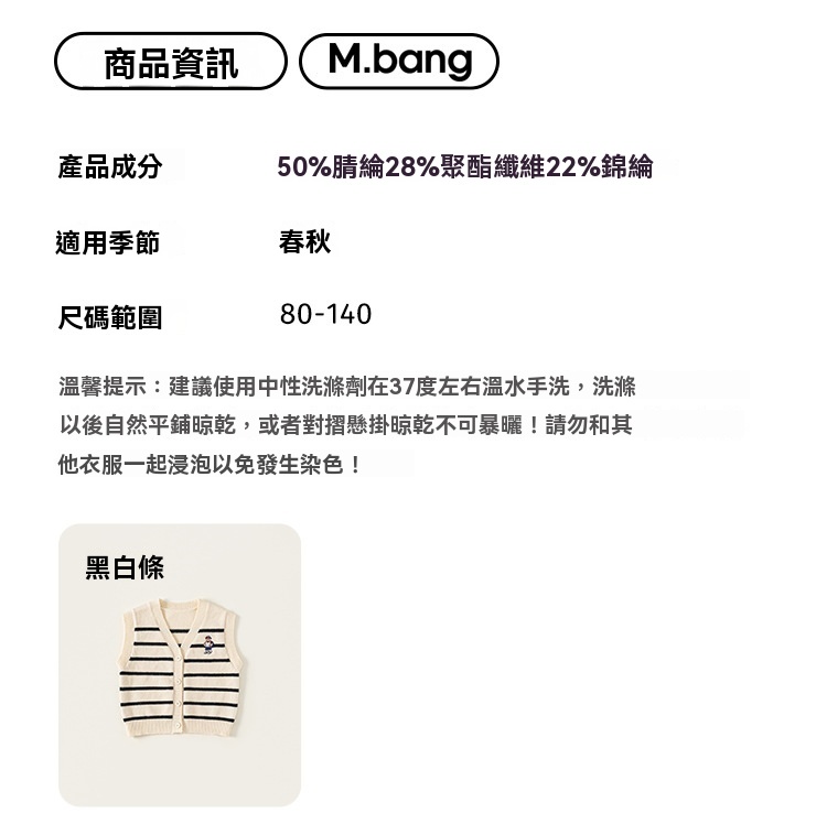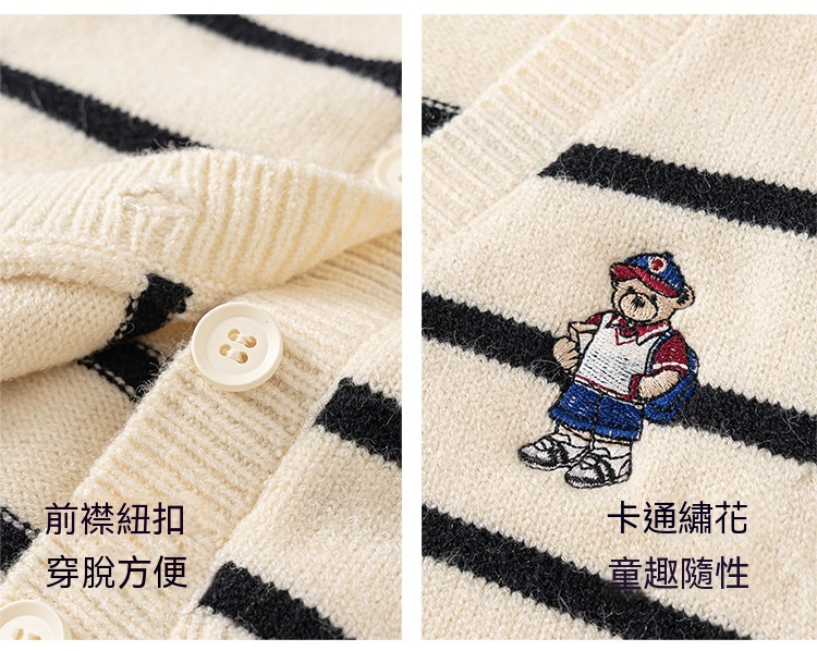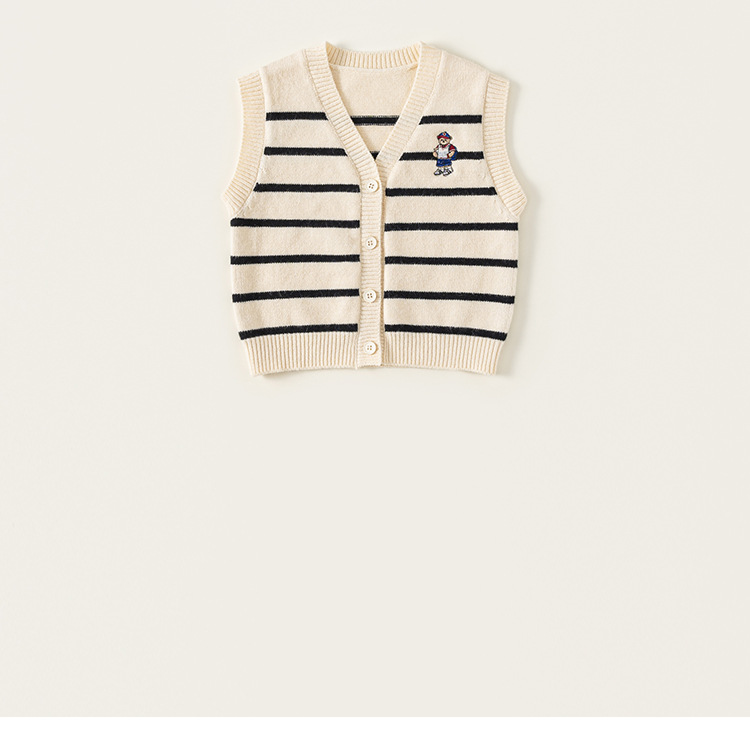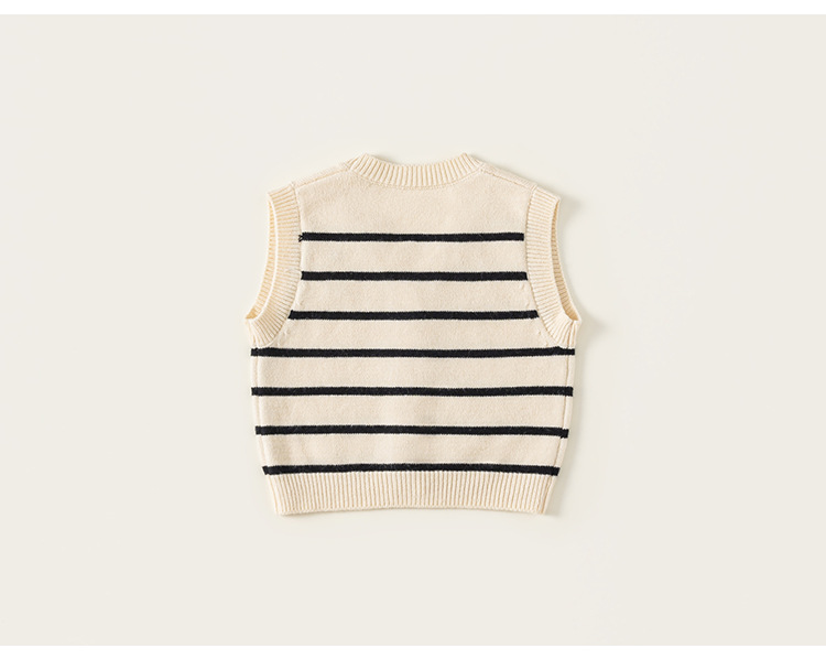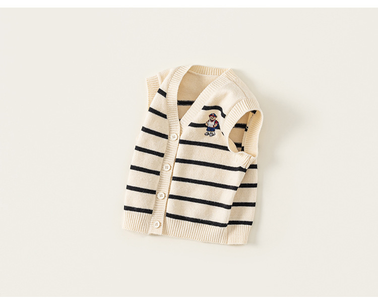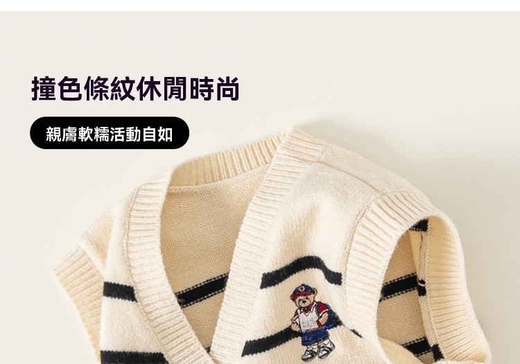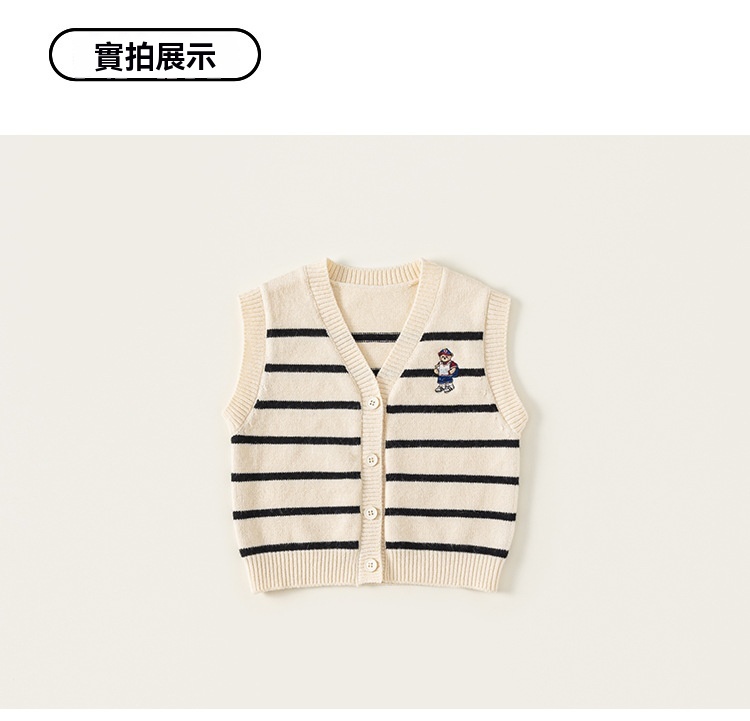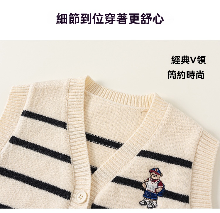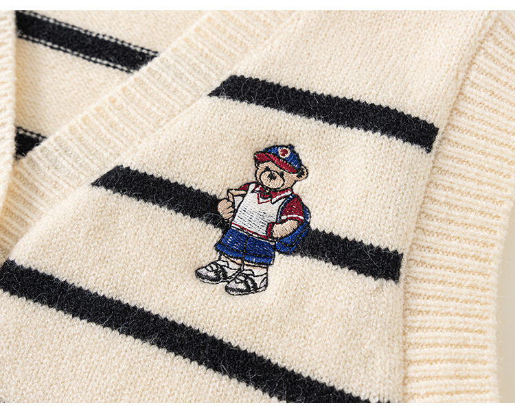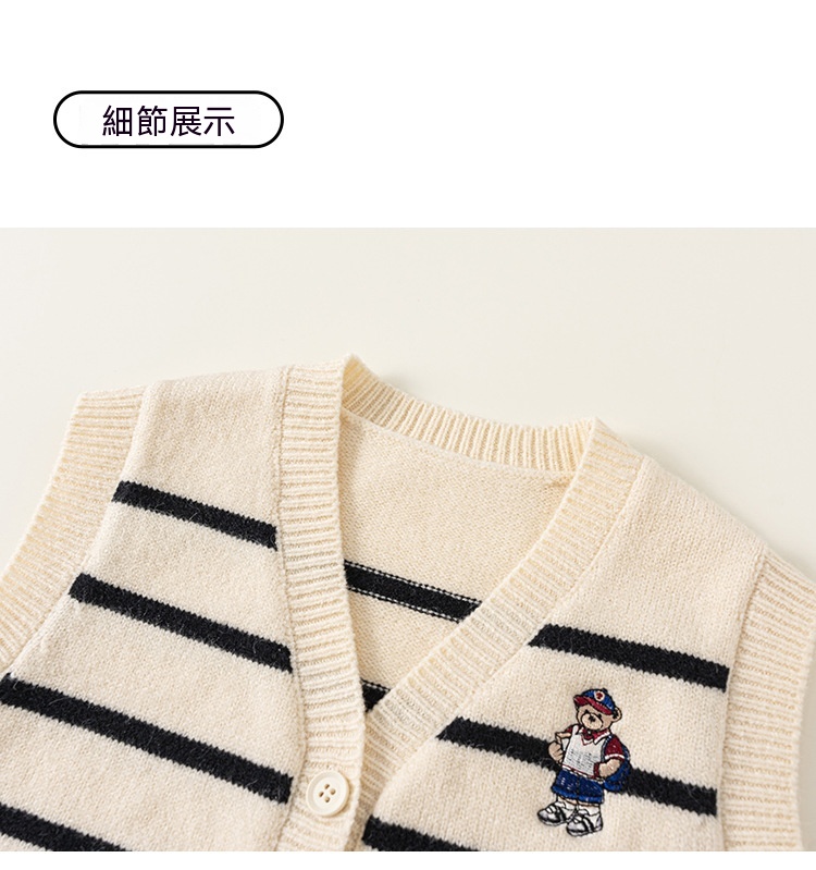 童裝新款秋裝小熊刺繡兒童上衣針織條紋無袖背心男童毛衣馬甲