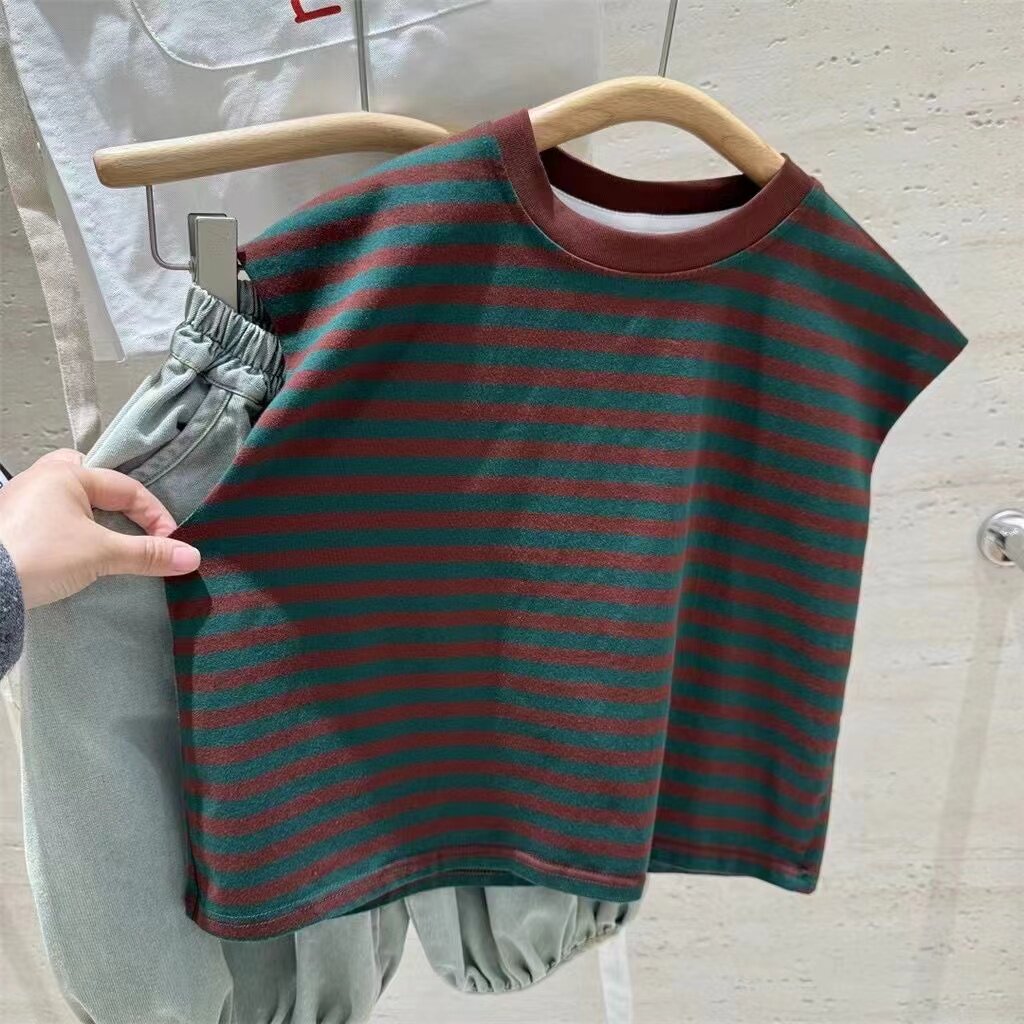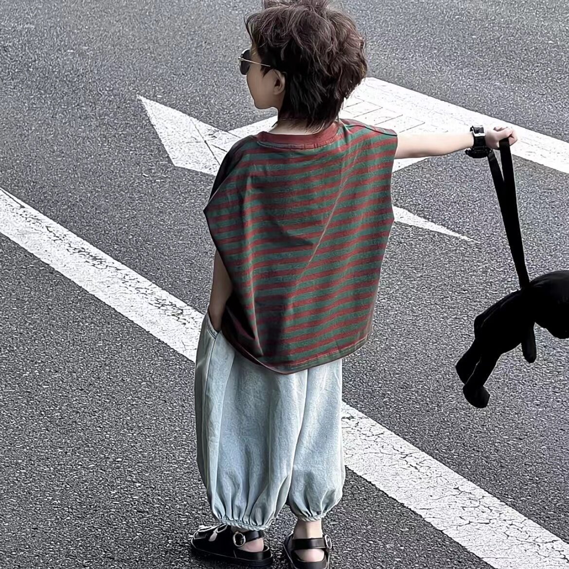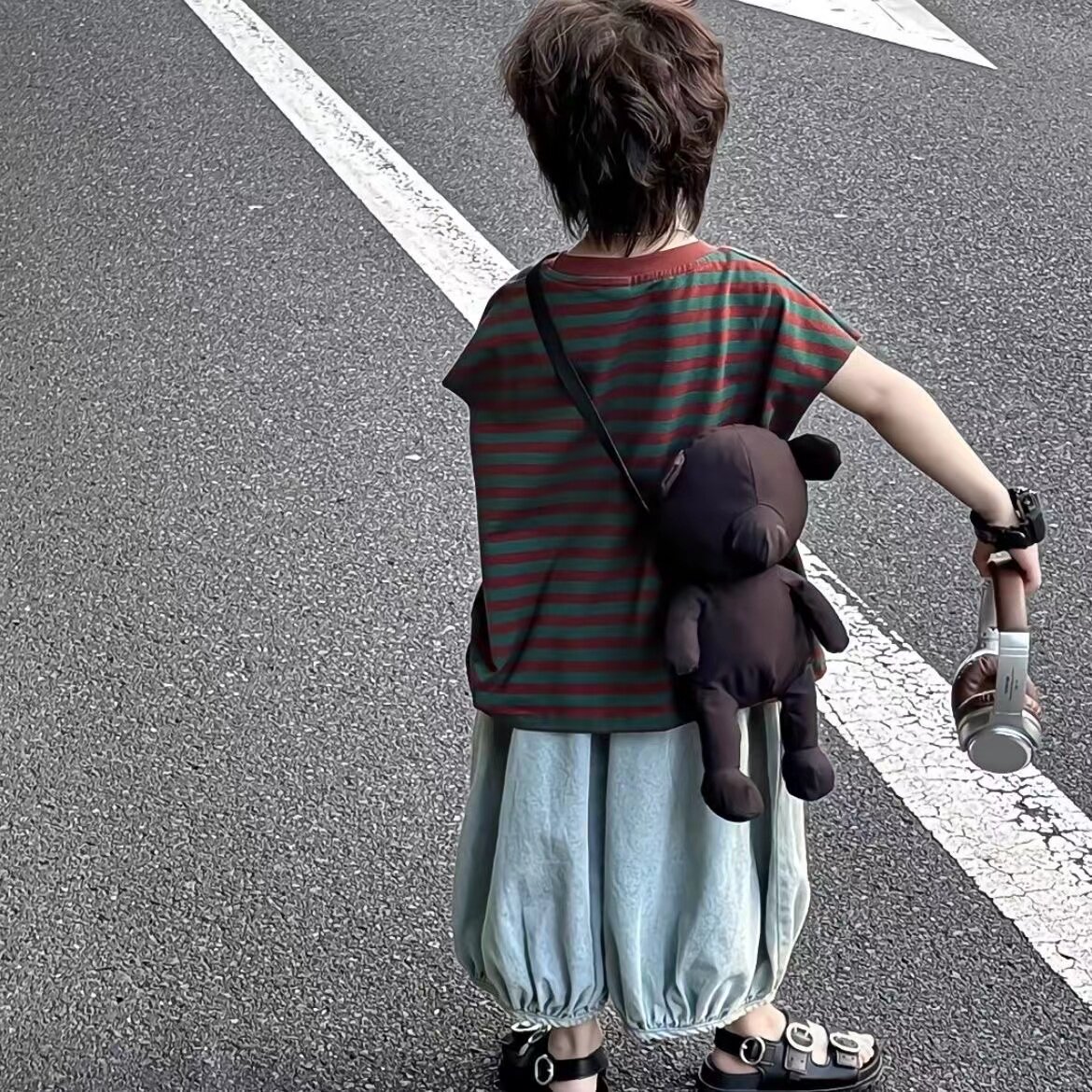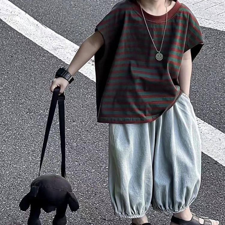 童裝男女童套裝T恤夏裝兒童短袖拼色寬鬆防蚊褲背心套裝