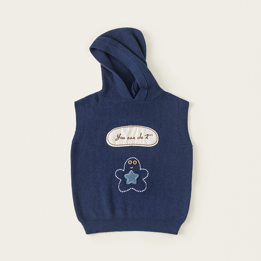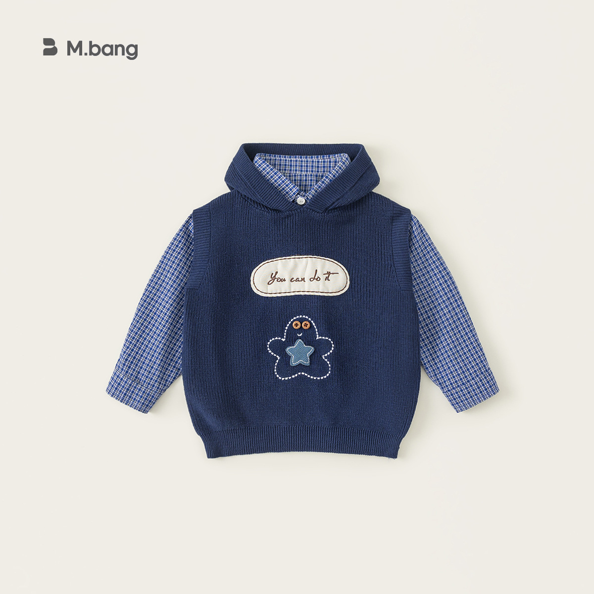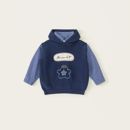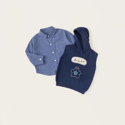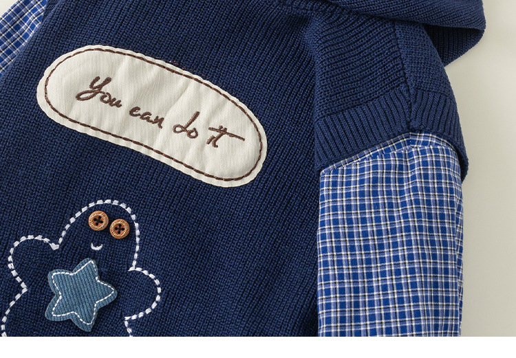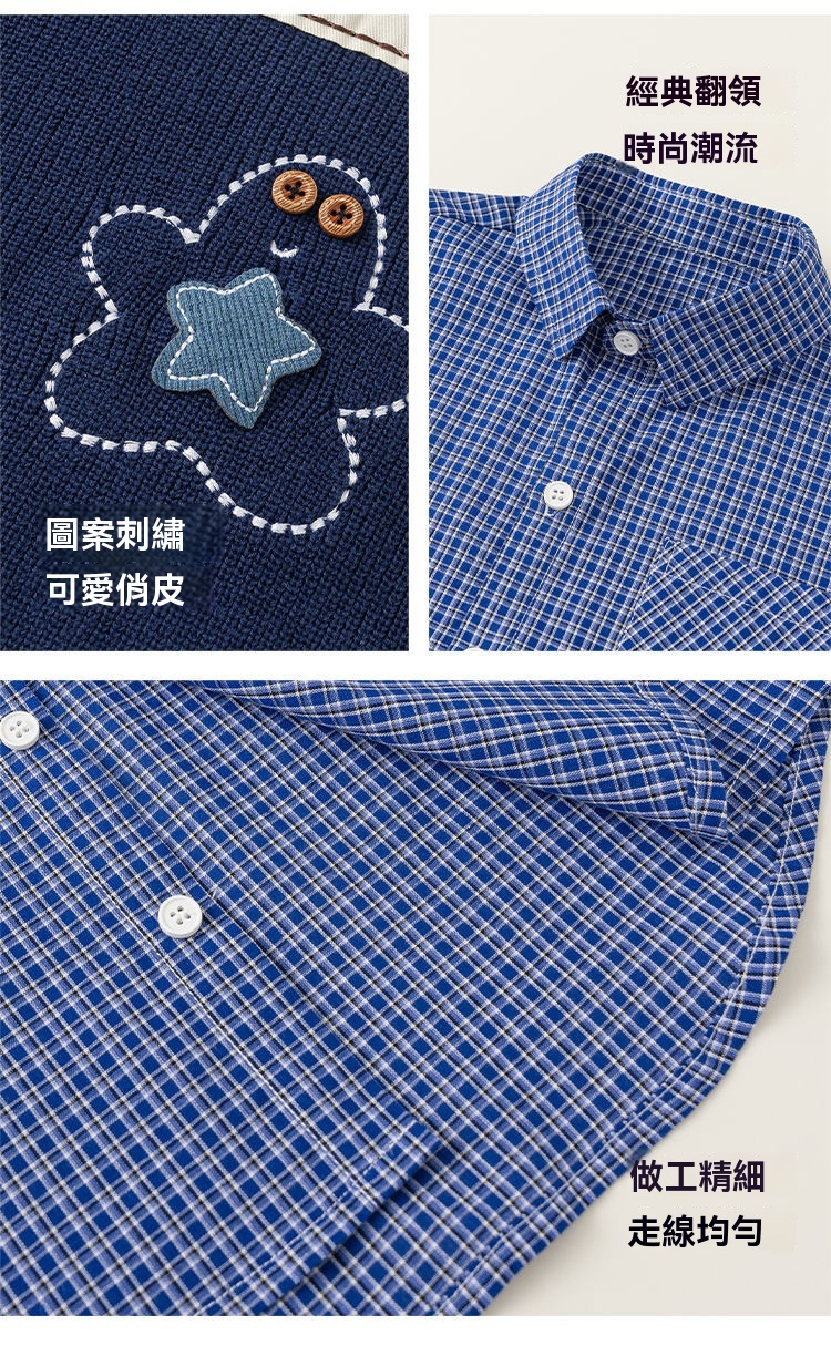 童裝男小童春季套裝帶帽字母刺繡毛衣馬甲休閒格子襯衫兩件套