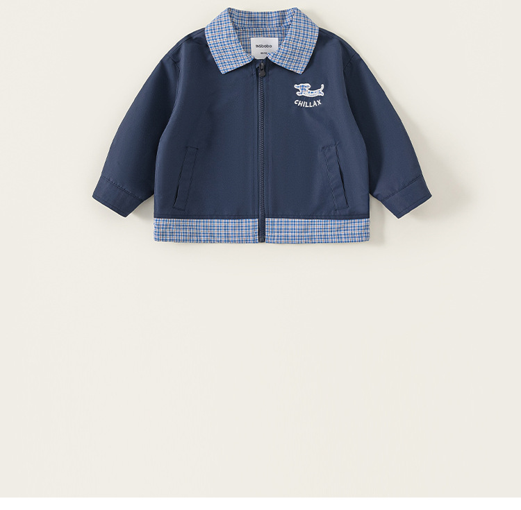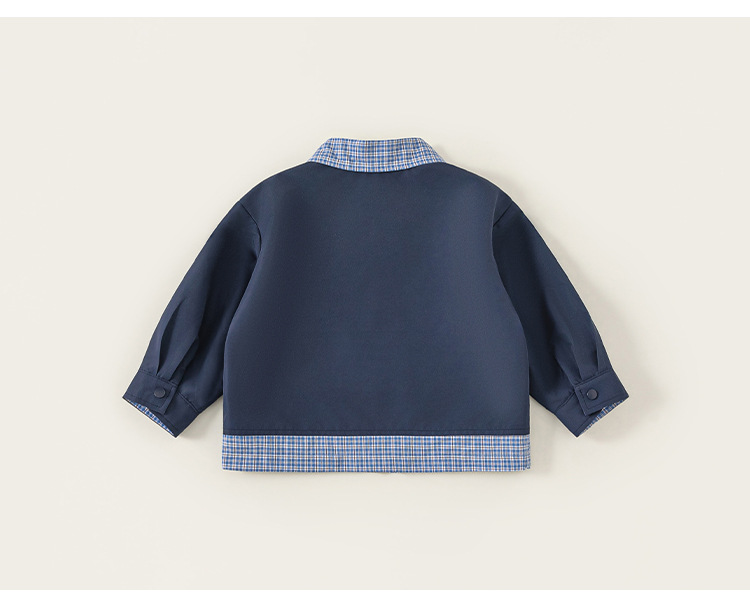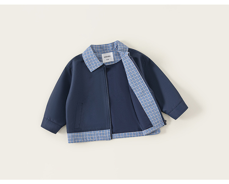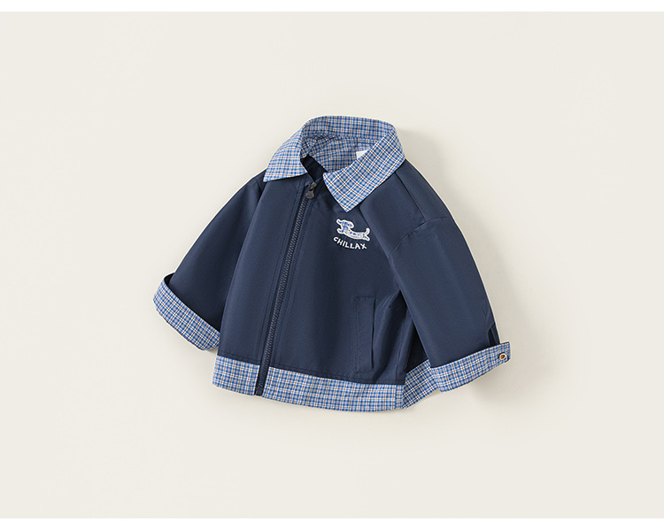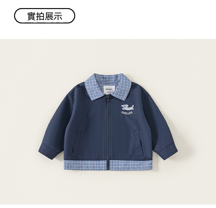 童裝男童外套春季新品翻領格子兒童拉鍊衫中小童衣服