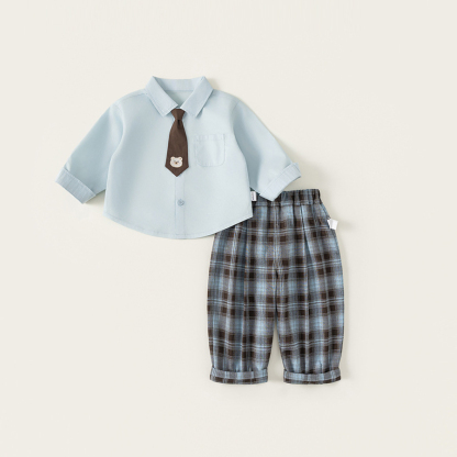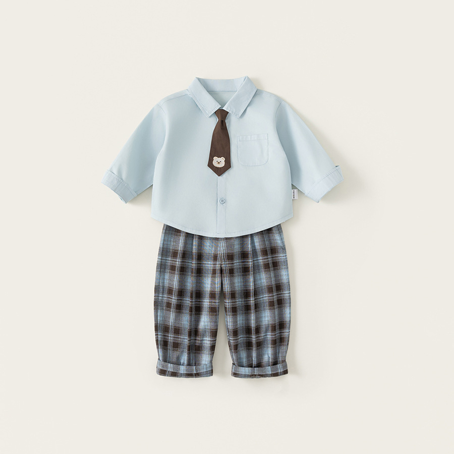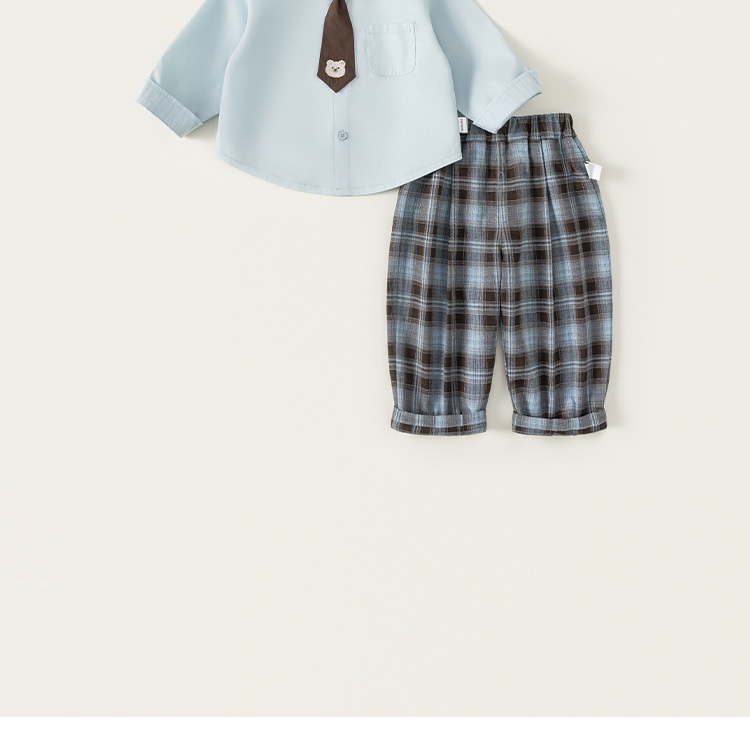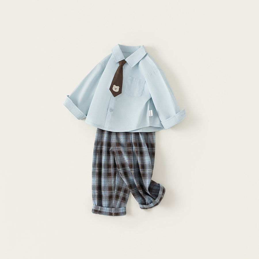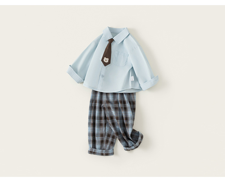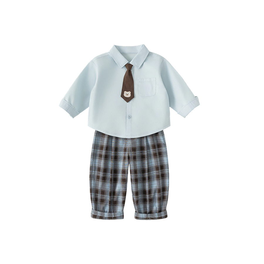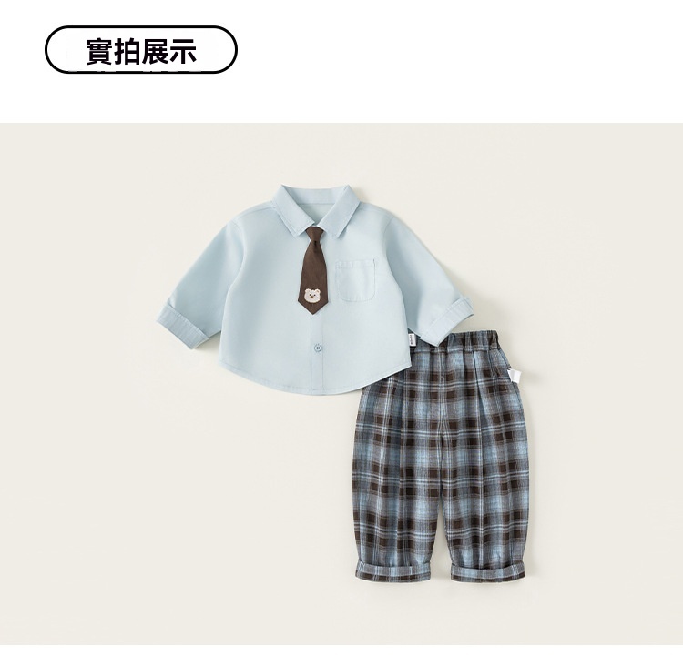 童裝男童套裝襯衫領帶格子褲中小童三件套兒童紳士裝