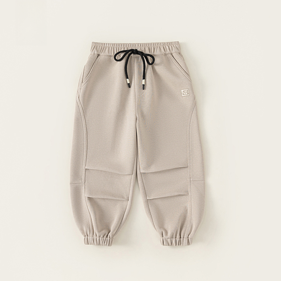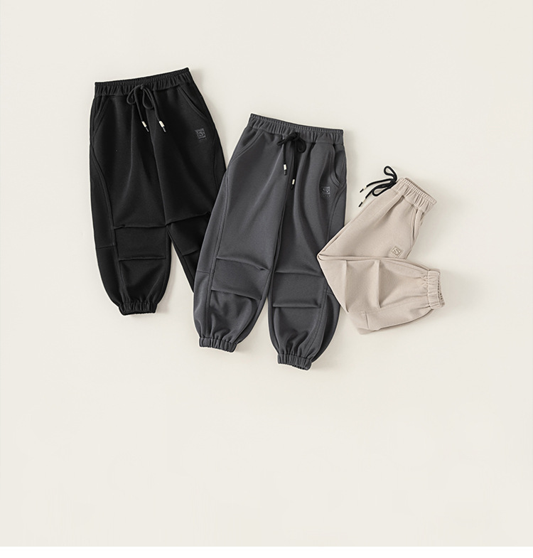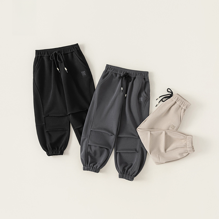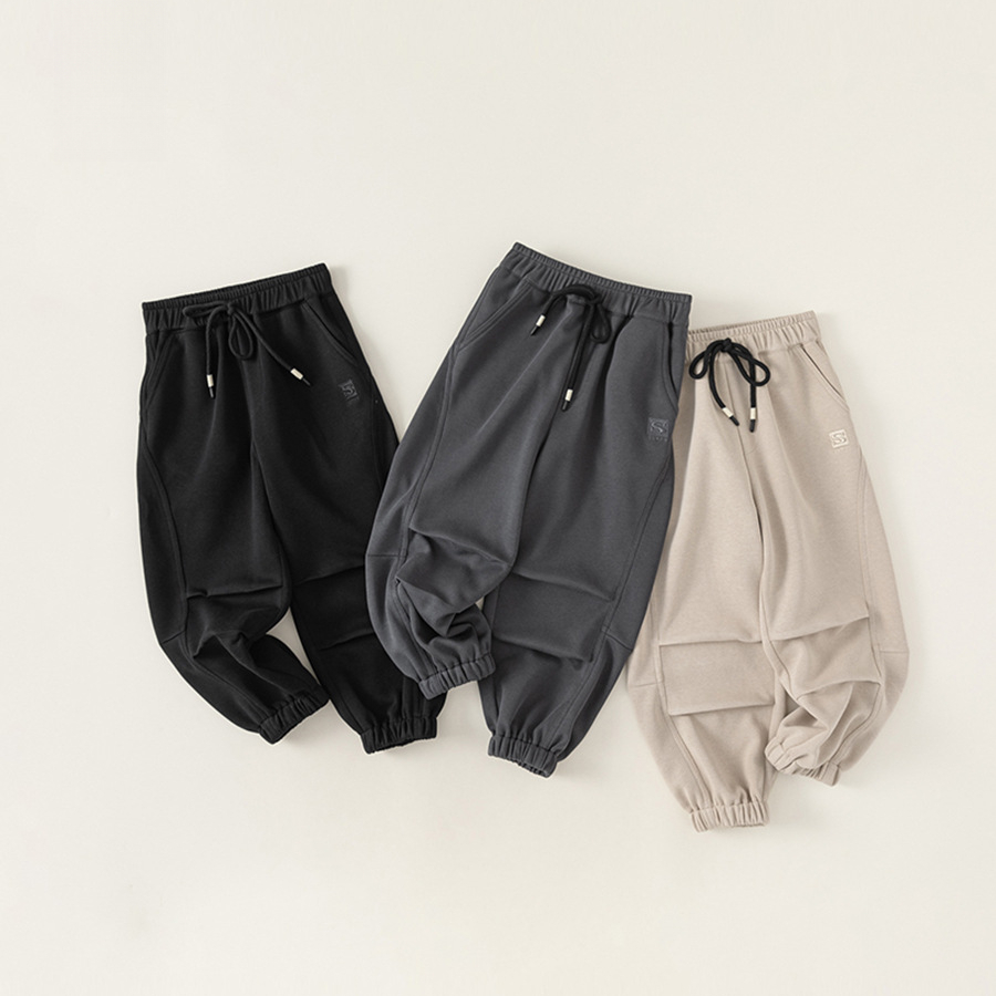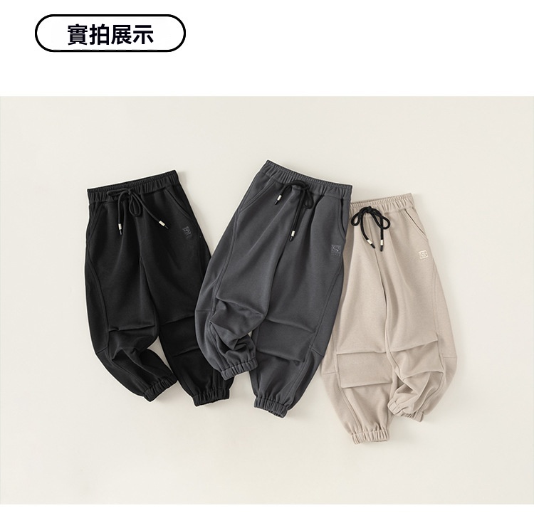童裝男童束腳褲休閒外出長褲中大童工裝褲純色百搭寬鬆運動褲