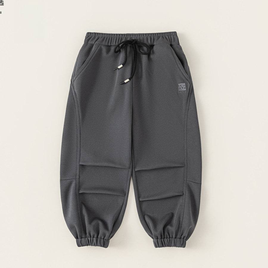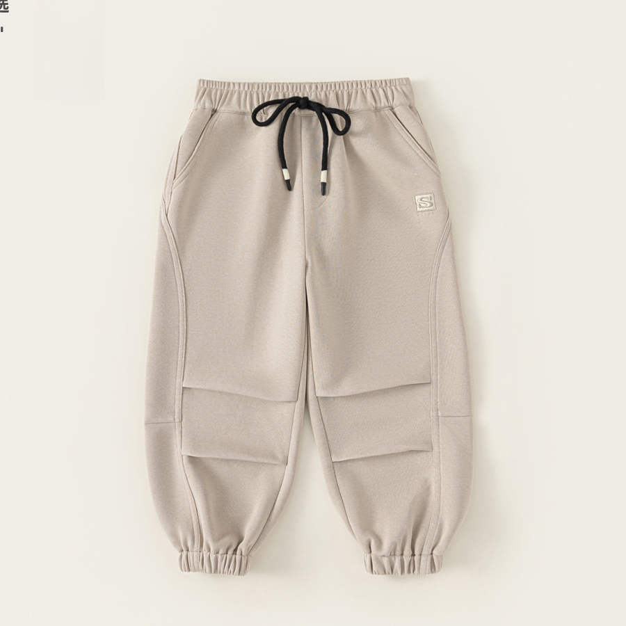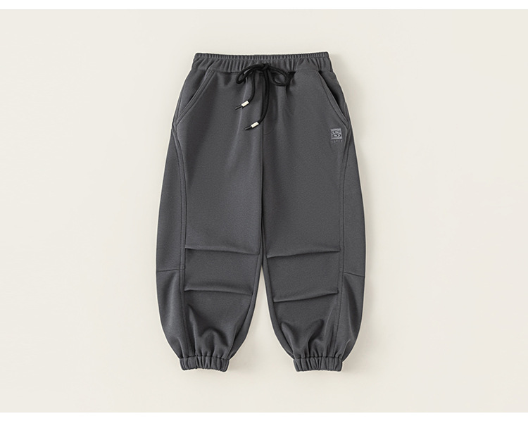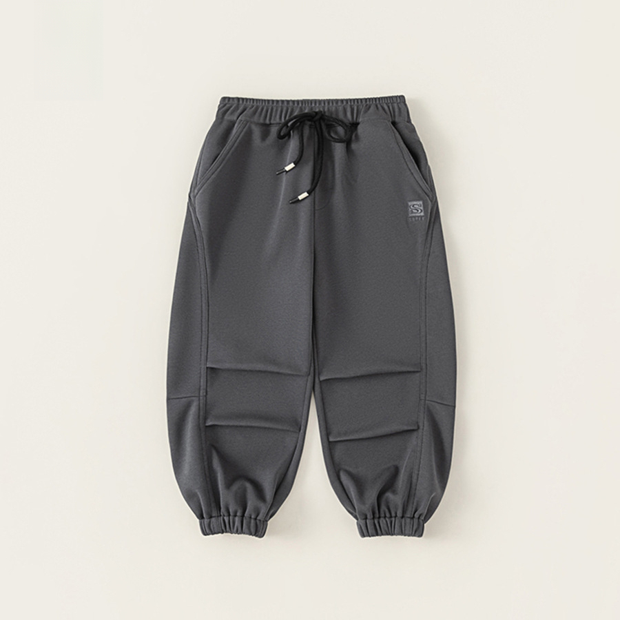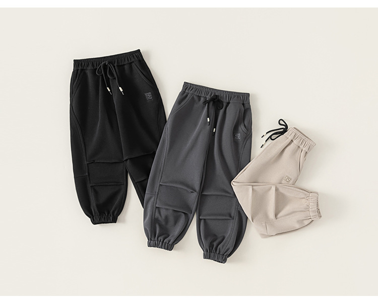 童裝男童束腳褲休閒外出長褲中大童工裝褲純色百搭寬鬆運動褲