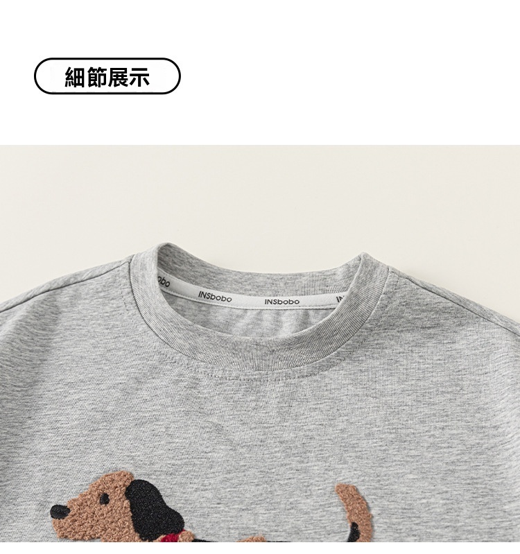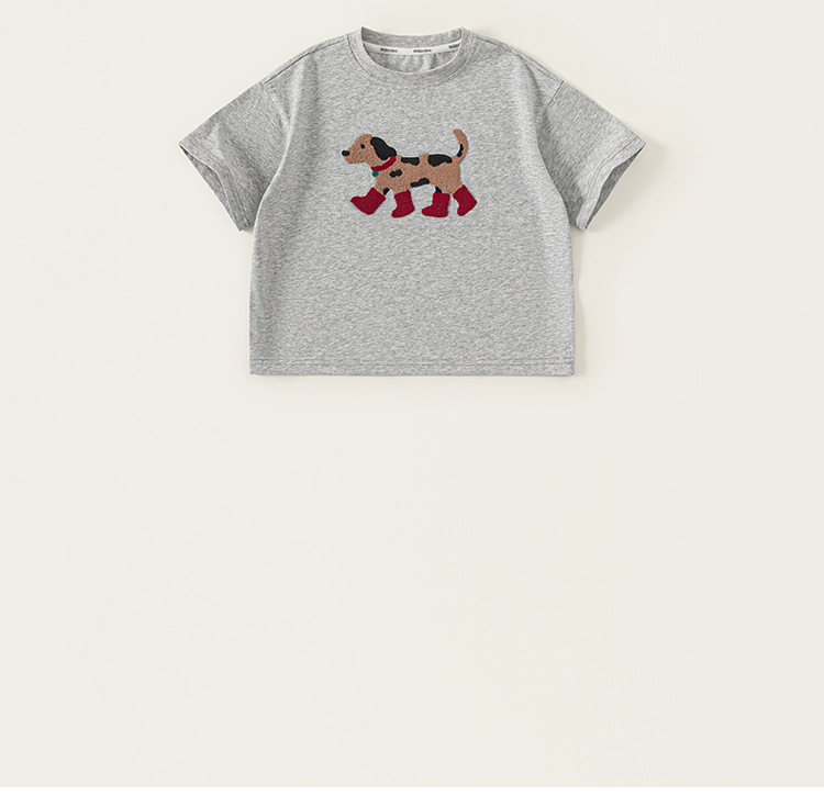 童裝男童短袖夏季新品小狗灰色圓領兒童T恤百搭簡約女童上衣