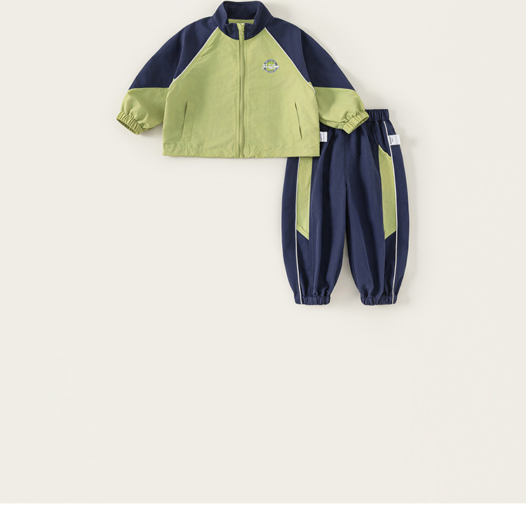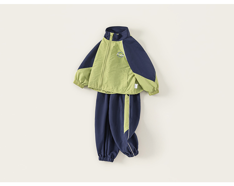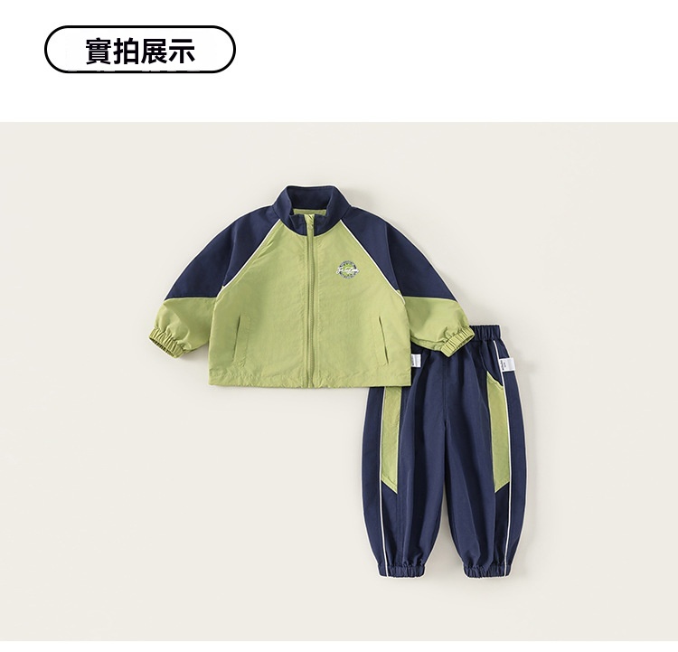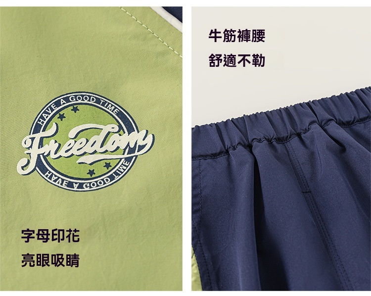 童裝男童秋季運動套裝拼色長袖印花外套休閒褲束腳長褲兩件套