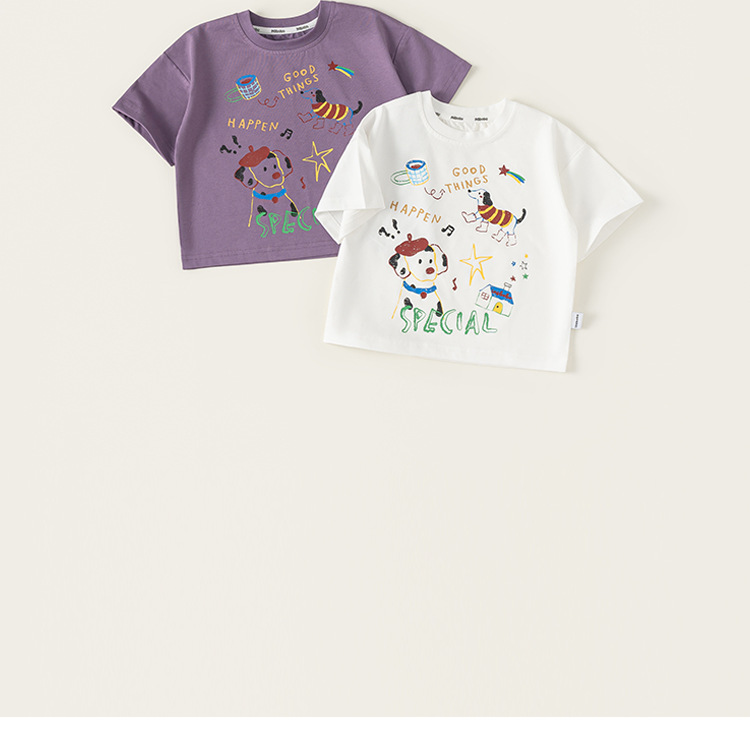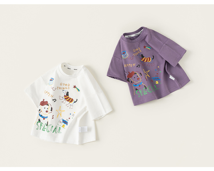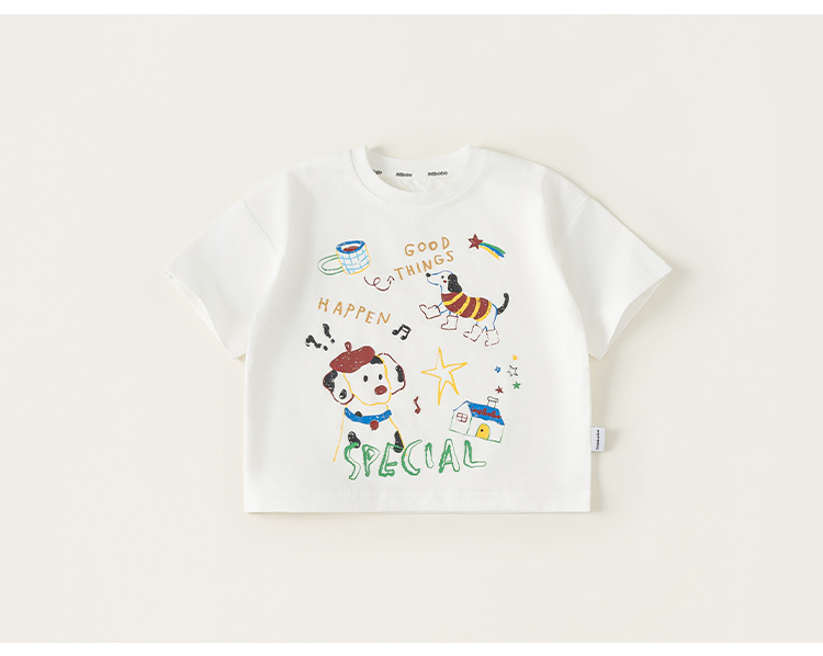 童裝男童T恤夏季新款小狗塗鴉兒童上衣寬鬆百搭小童短袖