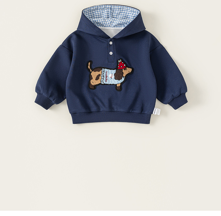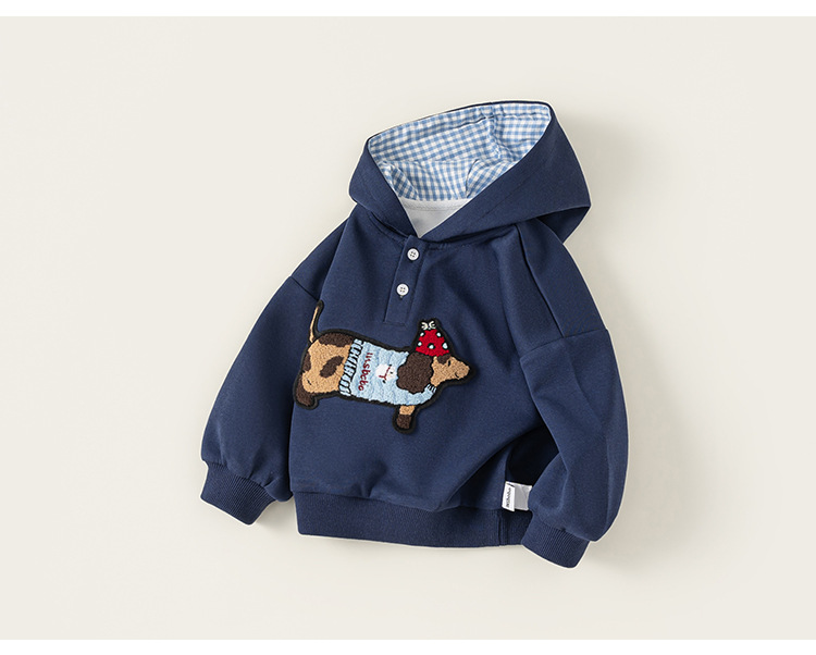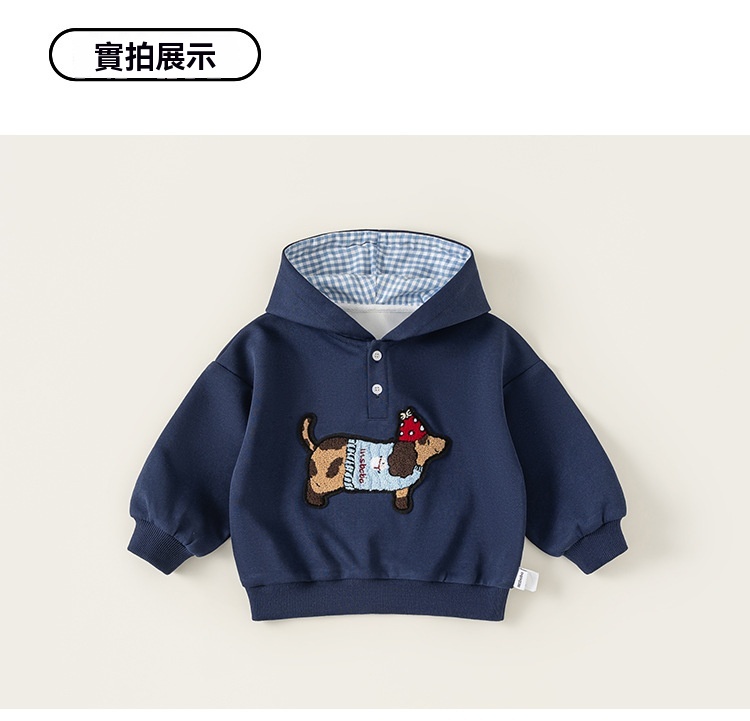 童裝秋季新款中小童帽衫兒童上衣可愛毛巾繡衣服男童連帽衛衣