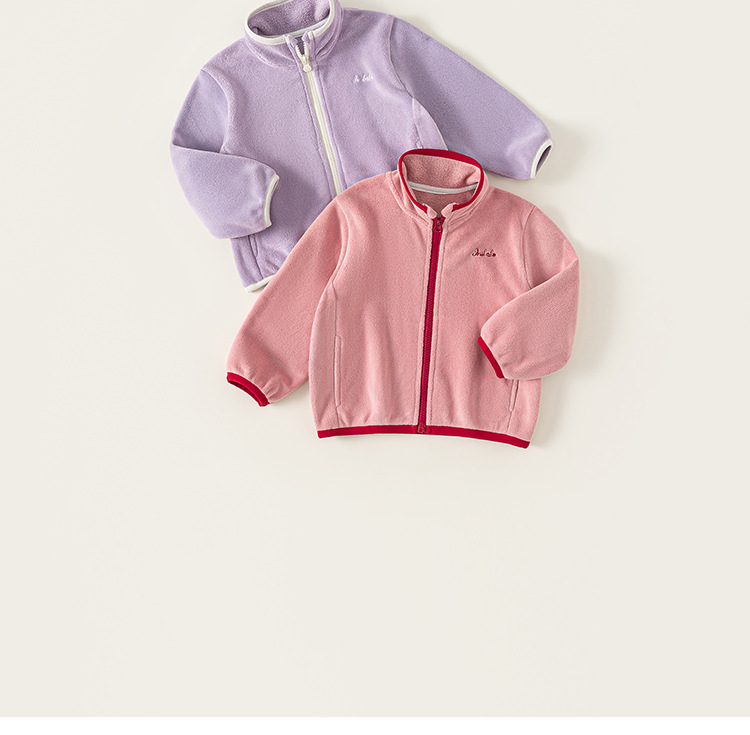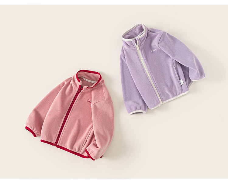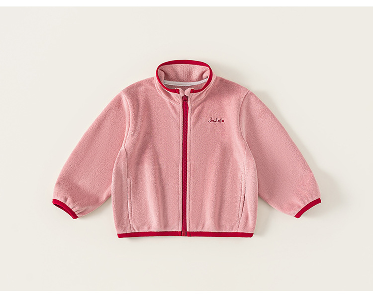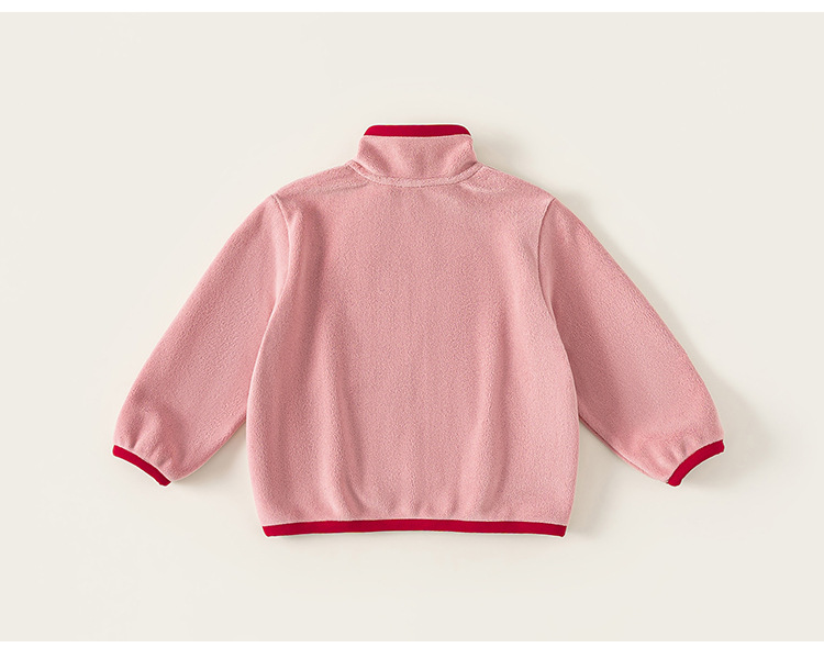 童裝秋款兒童上衣包邊內膽繡花長袖拼色長袖衣服女童毛絨外套