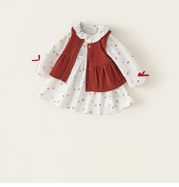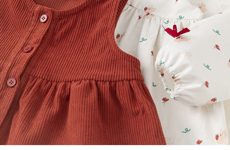 童裝秋款女童兩件套燈芯絨休閒馬甲女寶碎花連衣裙兒童套裝