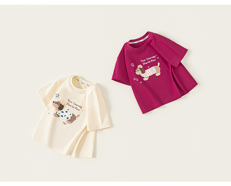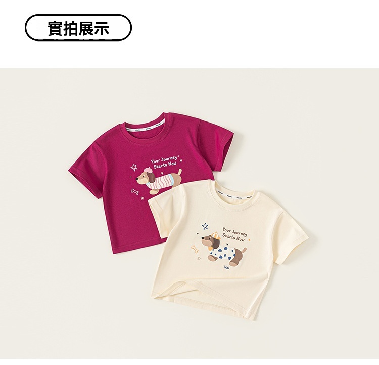 童裝童裝百搭男童T恤夏款卡通小狗女童短袖上衣潮